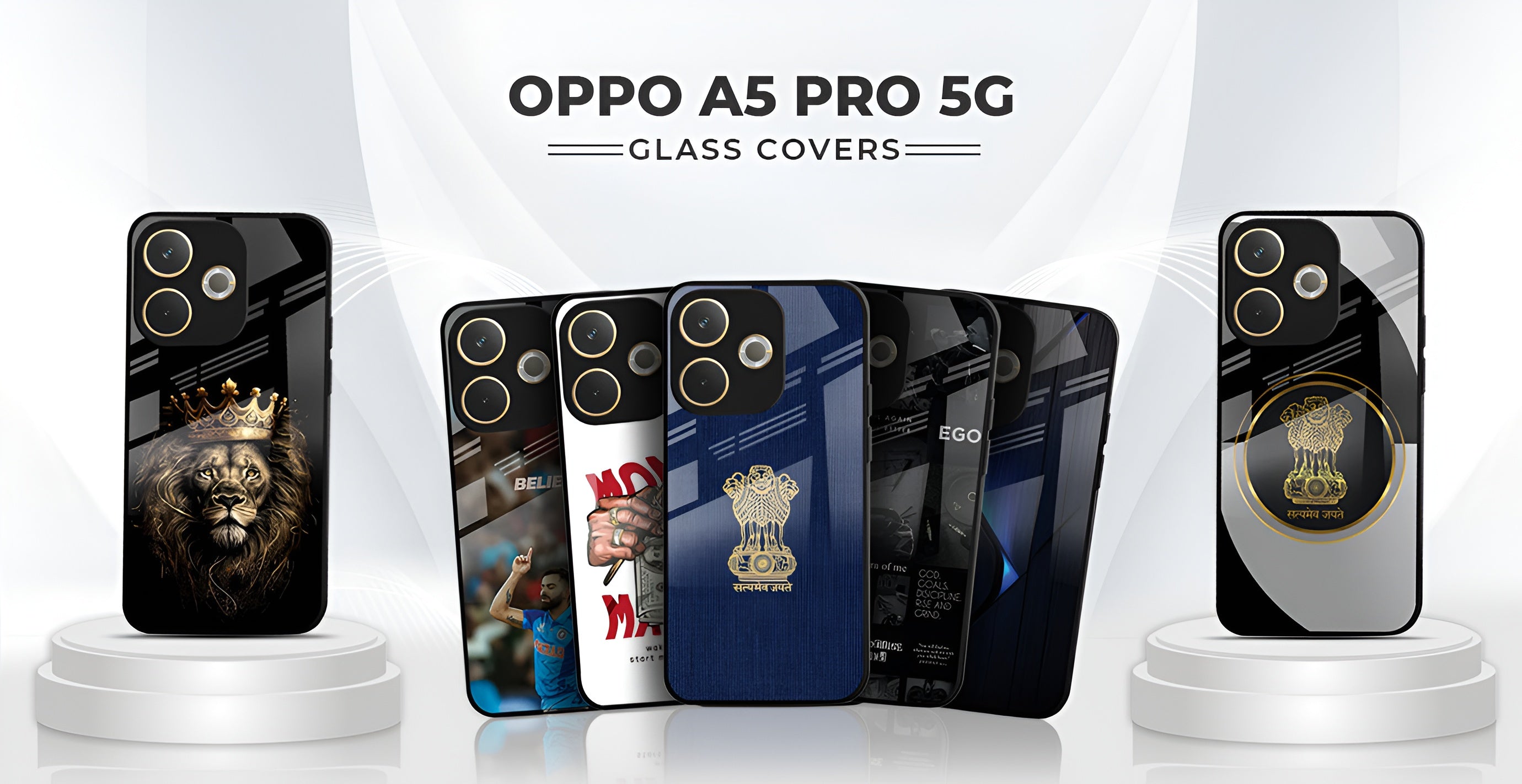 Oppo A5 Pro 5G Premium Acrylic Shockproof Glass Back Case (Crowned Lion)