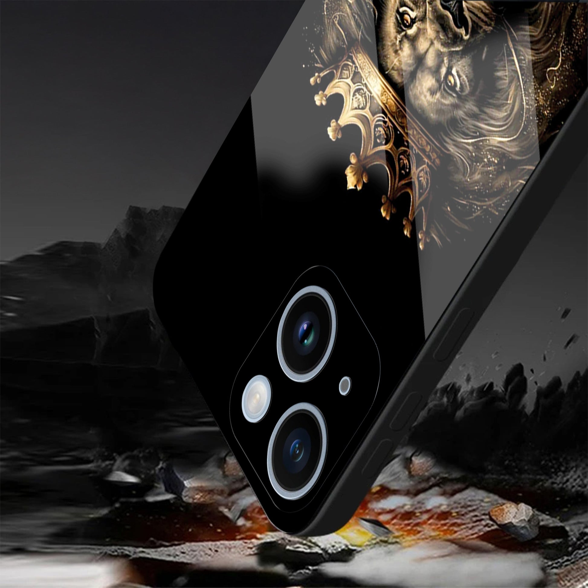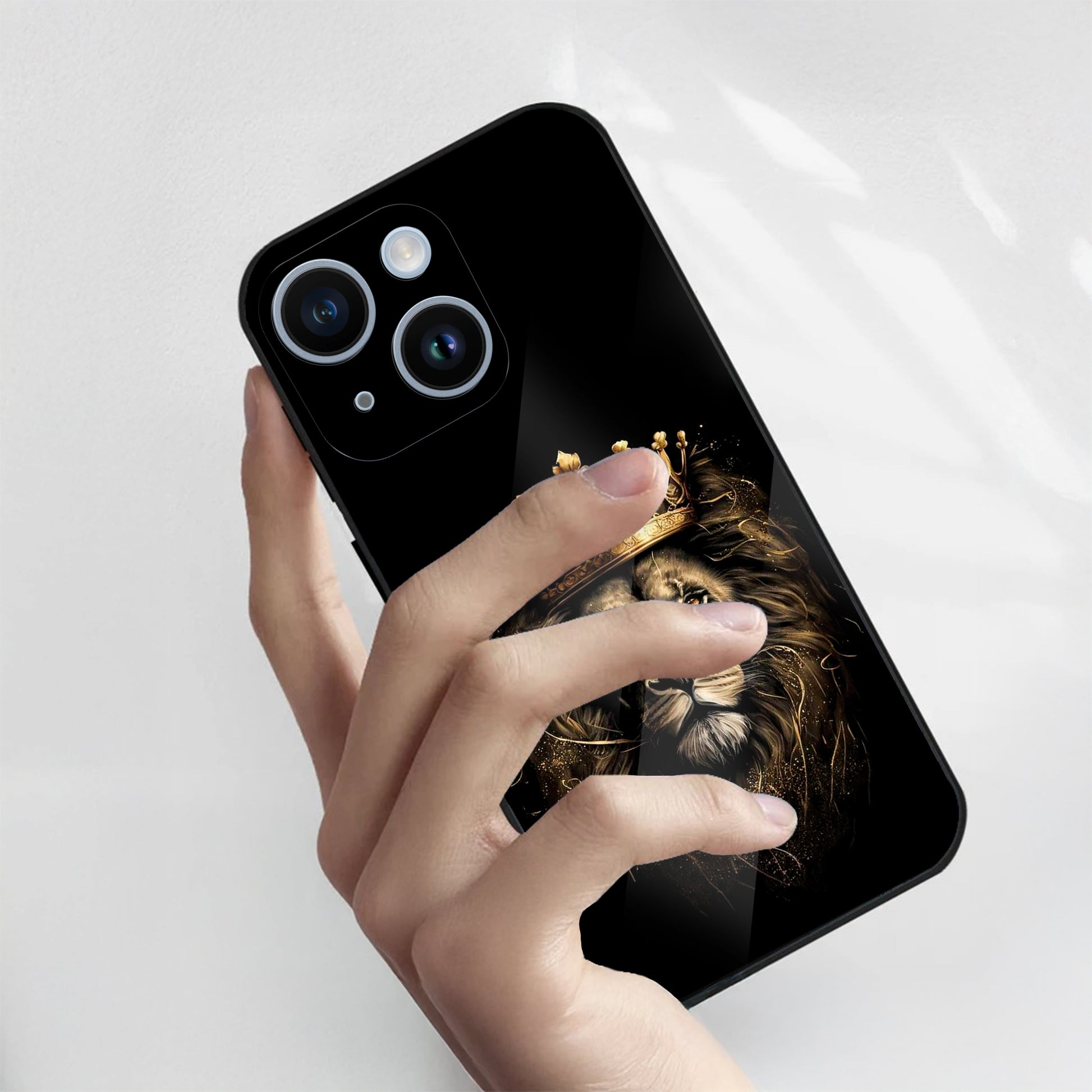 iPhone 14 Premium Acrylic Shockproof Glass Back Case (Crowned Lion)