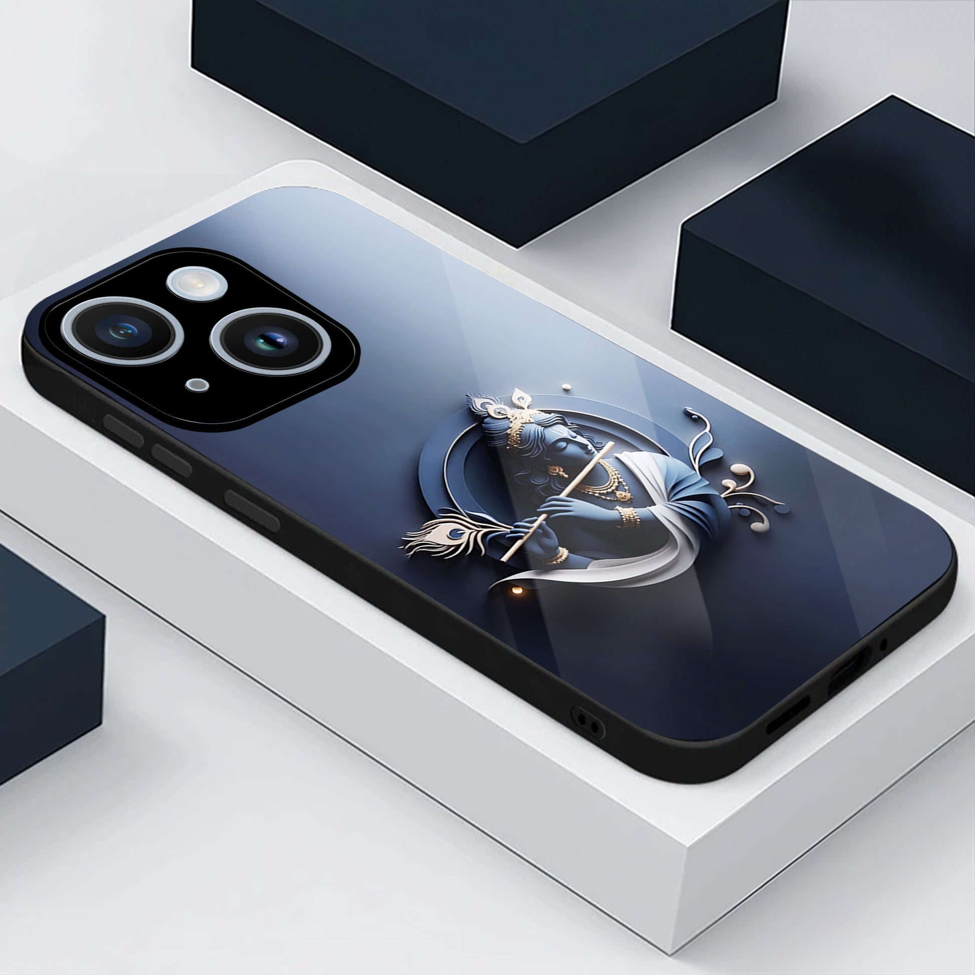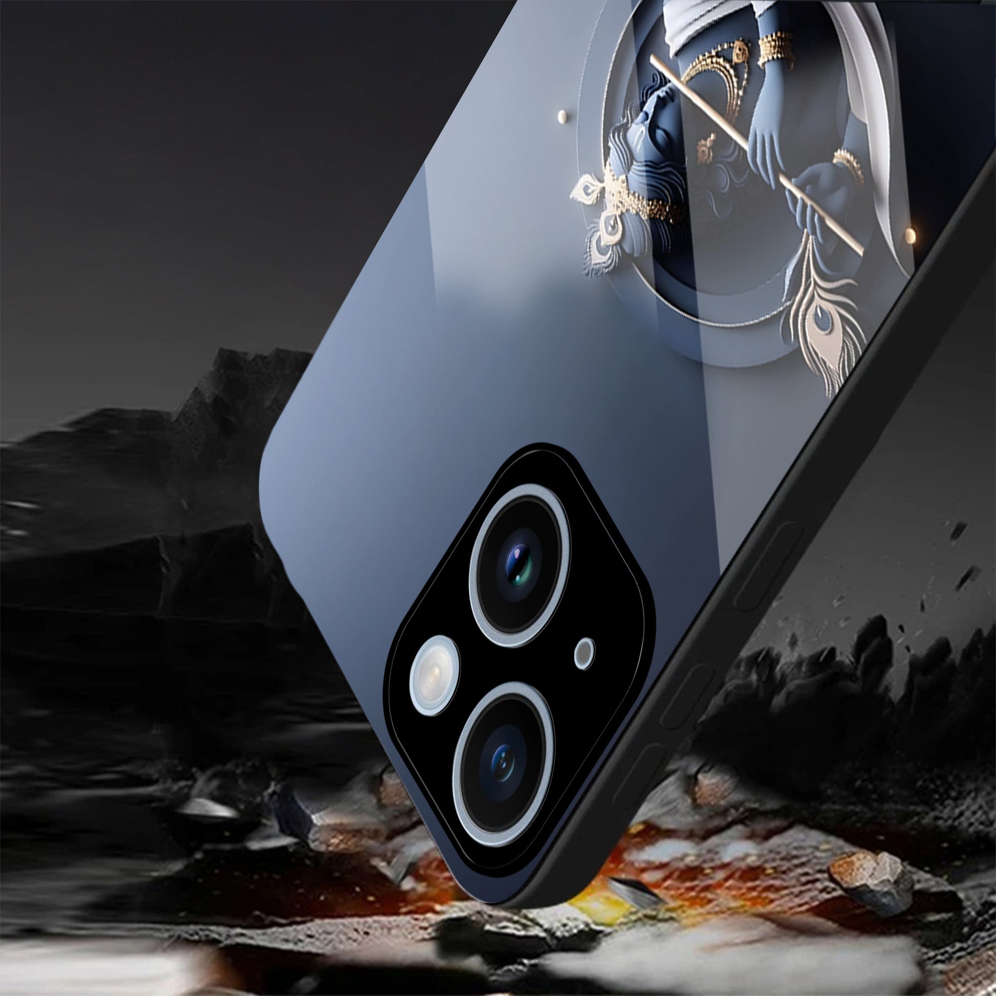 iPhone 14 Premium Acrylic Shockproof Glass Back Case ( Krishna )