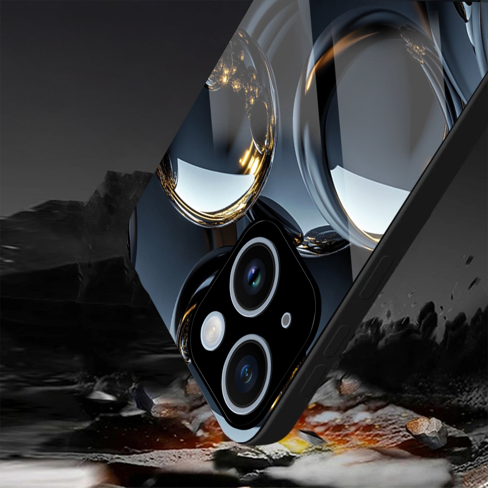 iPhone 14 Premium Acrylic Shockproof Glass Back Case (Mirror Spheres)