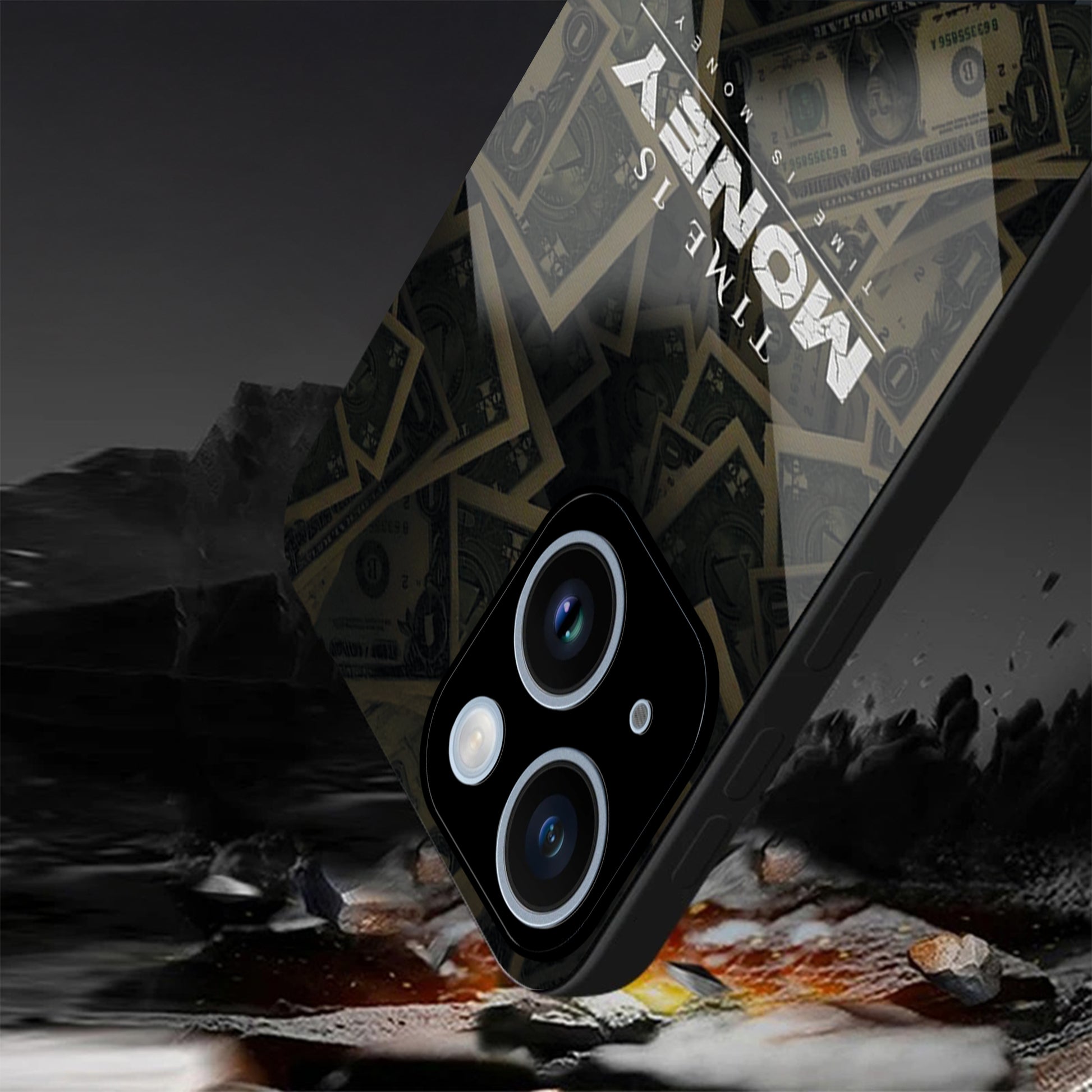 iPhone 14 Premium Acrylic Shockproof Glass Back Case (Time Is Money)