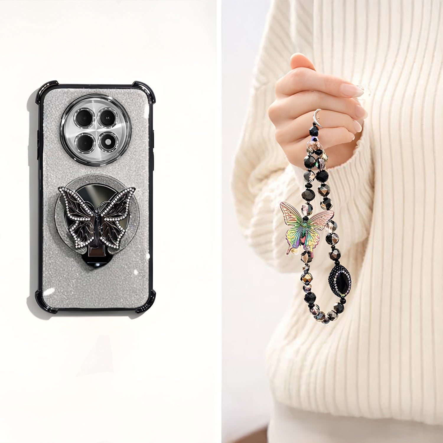 Oppo F31 Pro+ 5G Shockproof Shimmer Butterfly Stand Case with Charm Strap