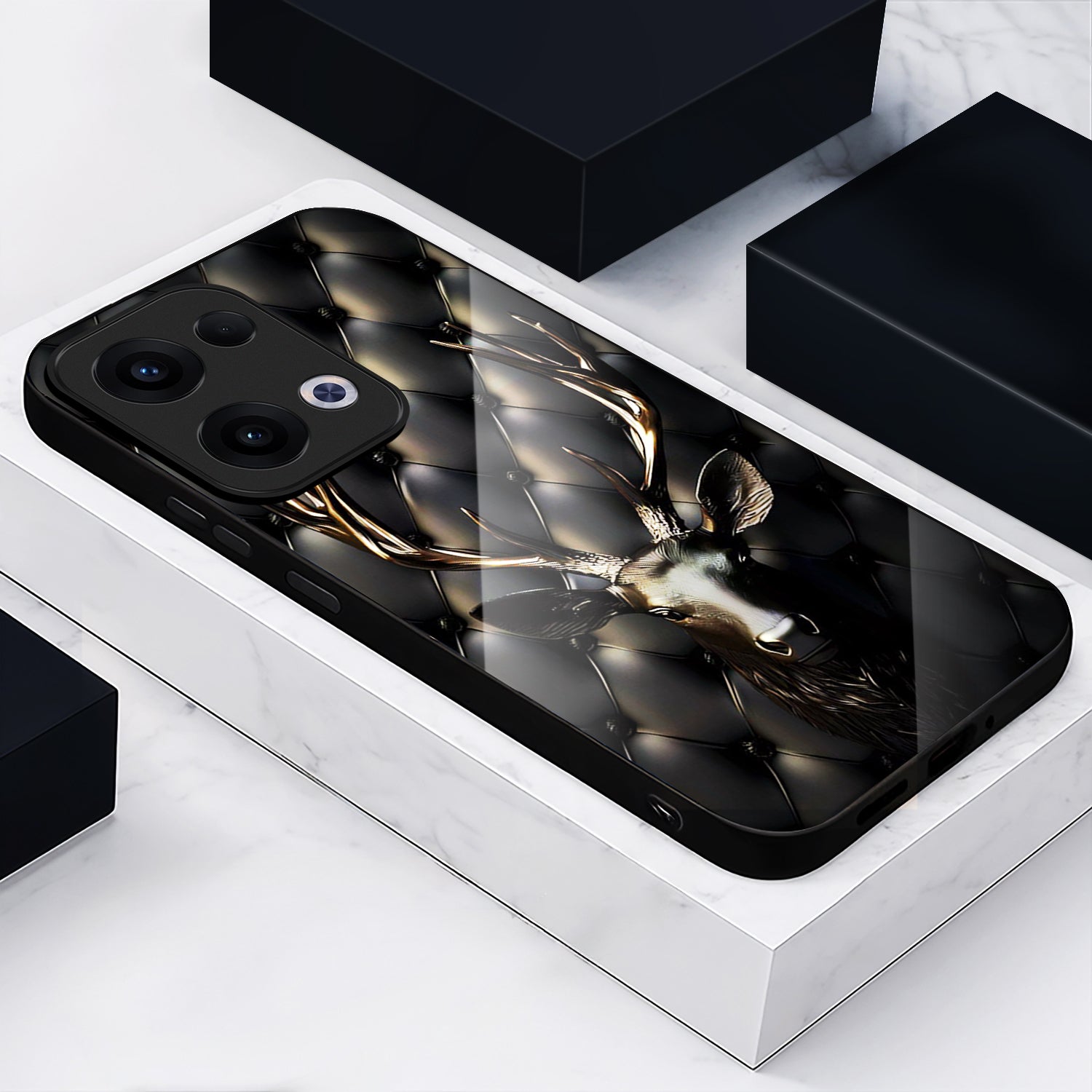 Oppo Reno 13 5G Premium Acrylic Shockproof Glass Back Case (Golden Antlers)