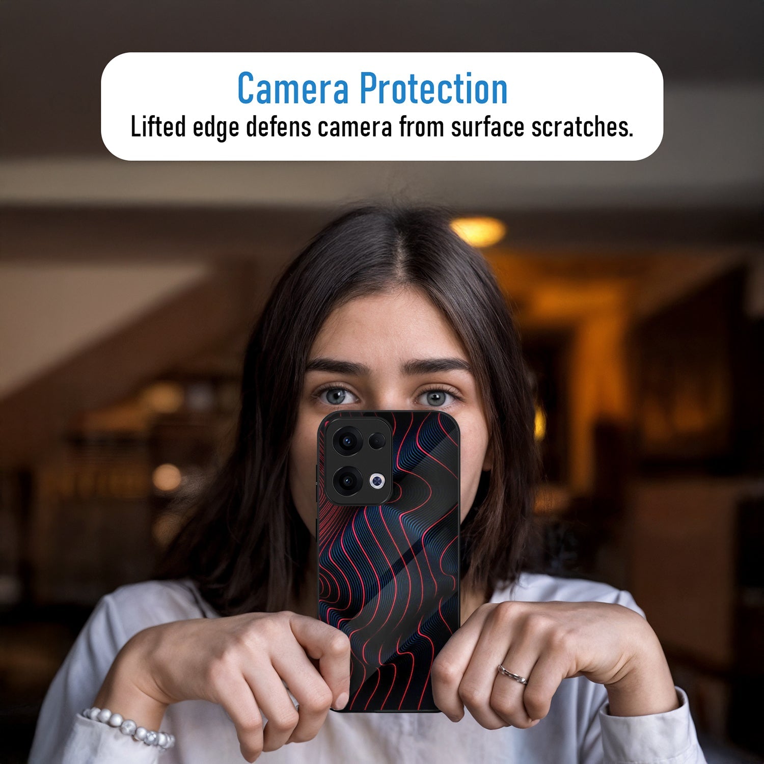 Oppo Reno 13 5G Premium Acrylic Shockproof Glass Back Case (Neon Waves)