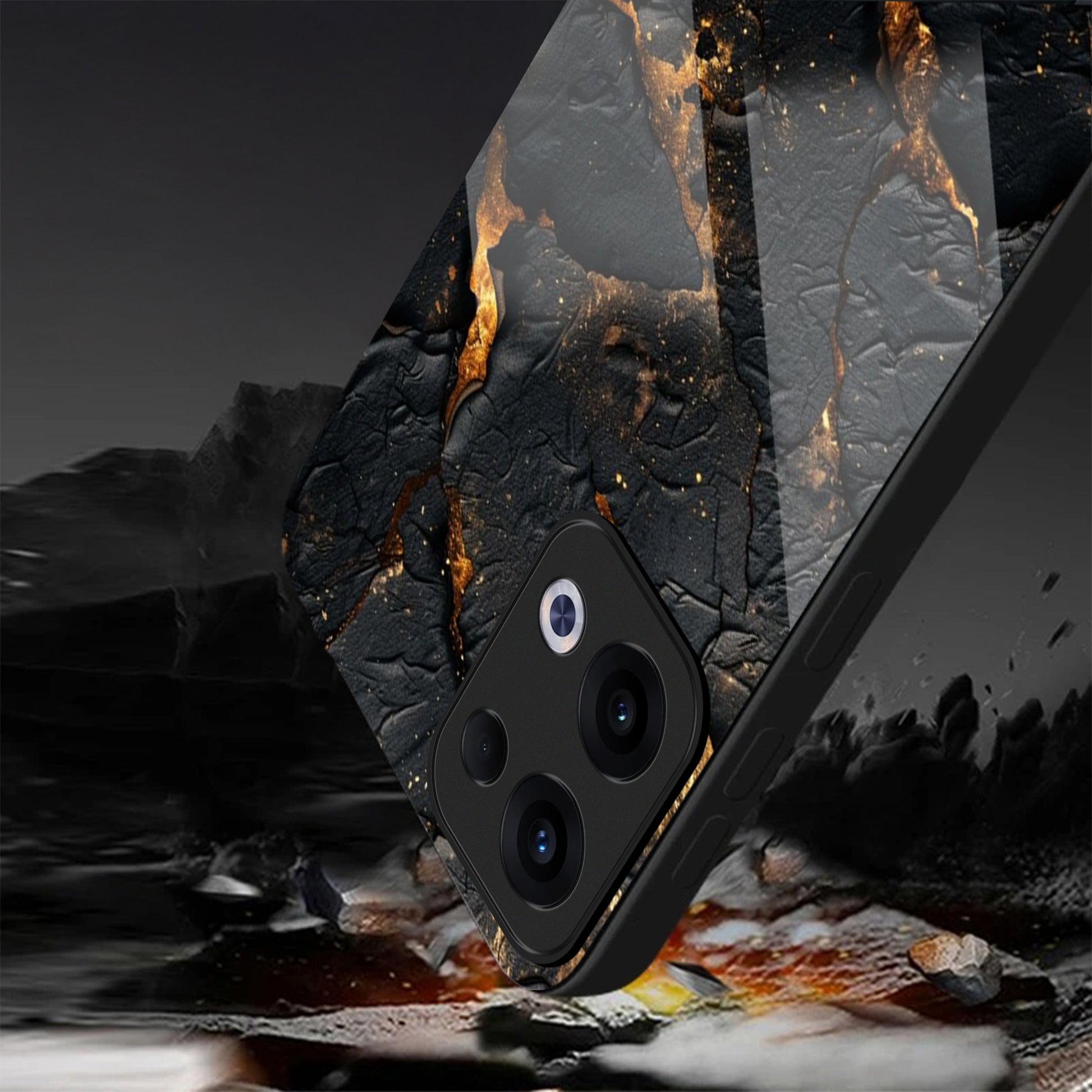 Oppo Reno 13 5G Premium Acrylic Shockproof Glass Back Case (Volcanic Gold)