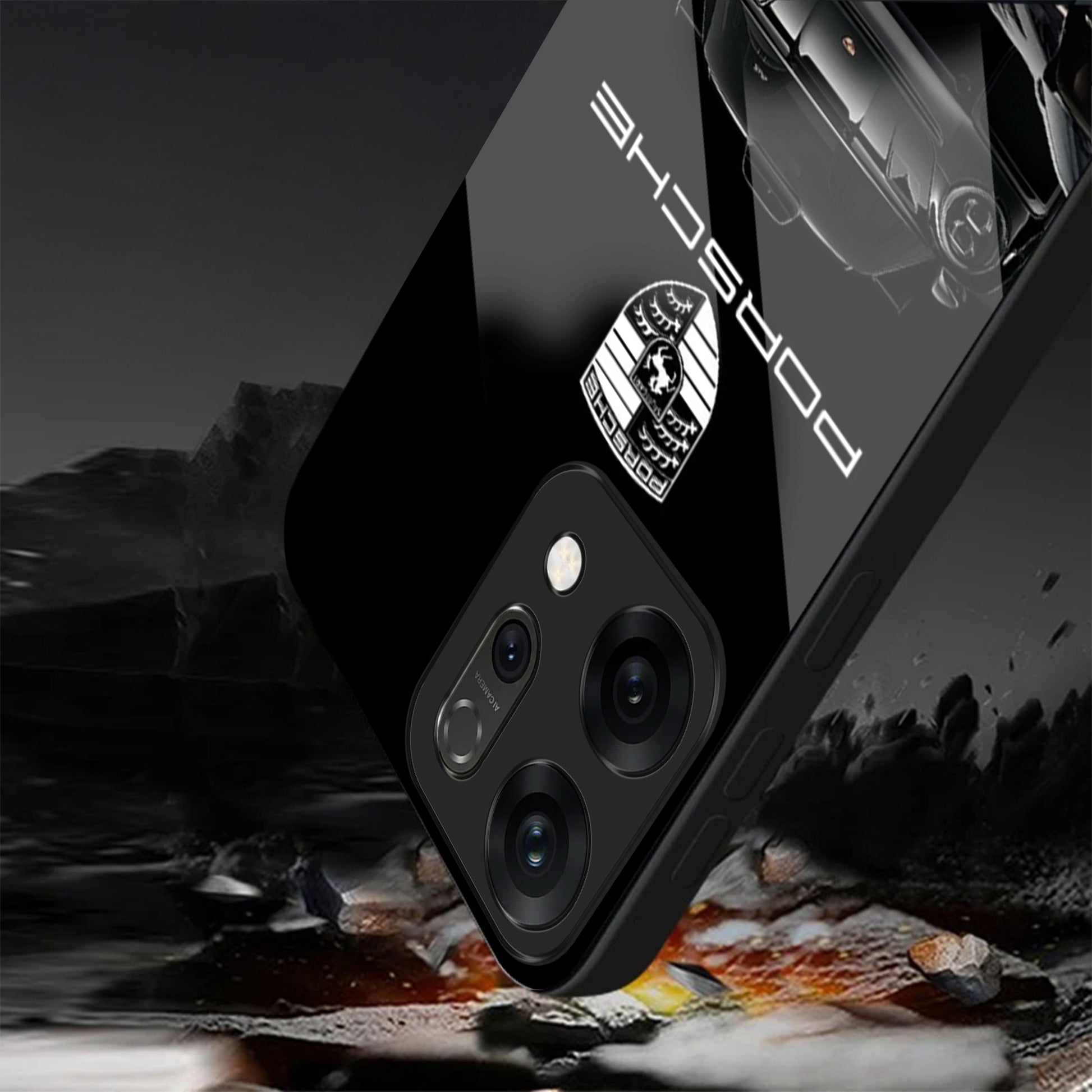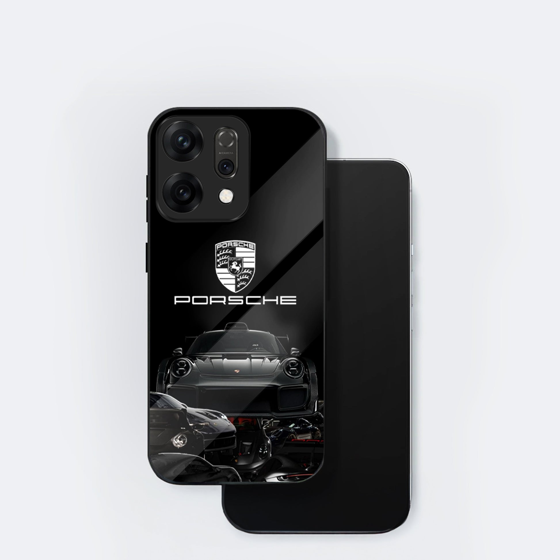 Oppo Reno 14 5G Premium Acrylic Shockproof Glass Back Case (Black Porsche)