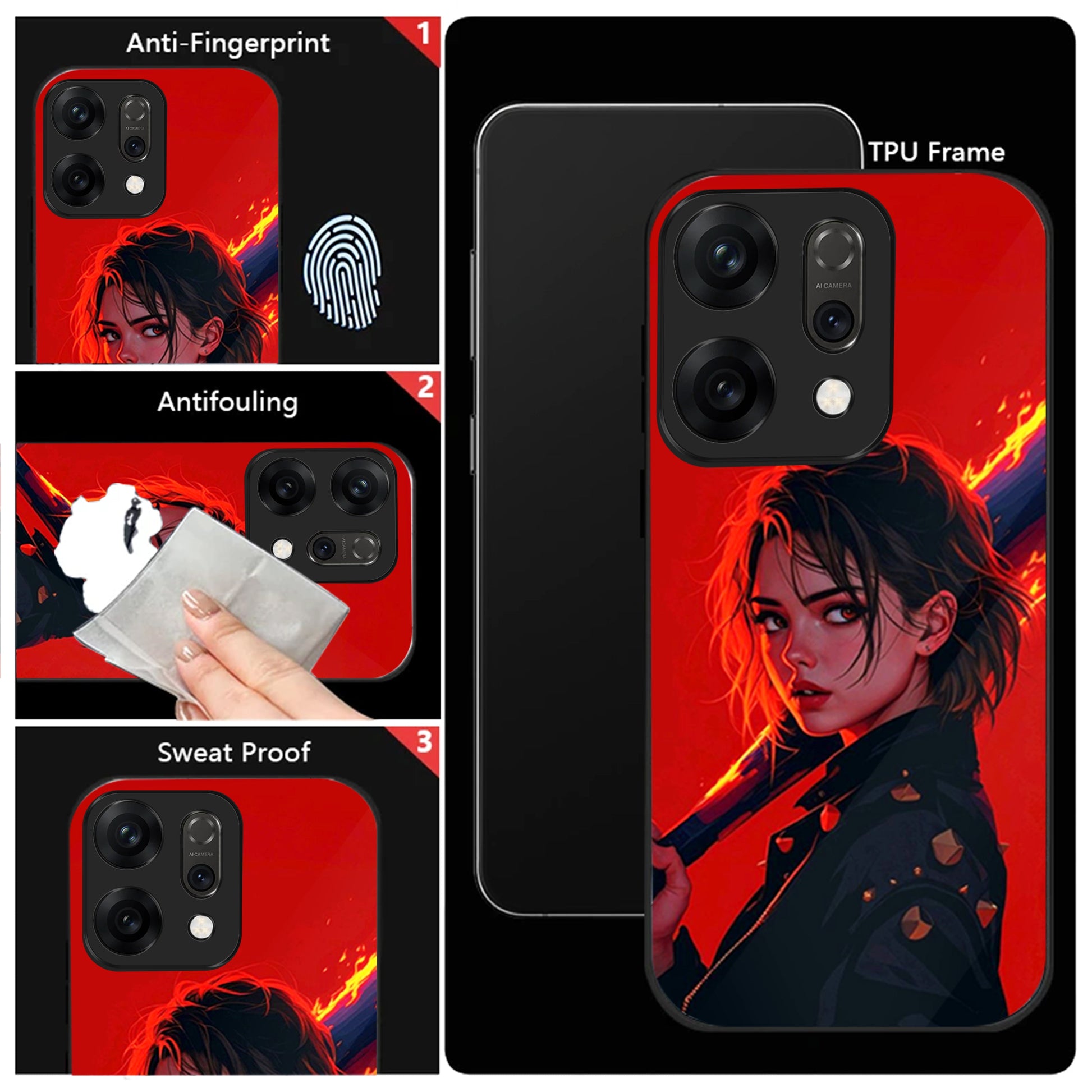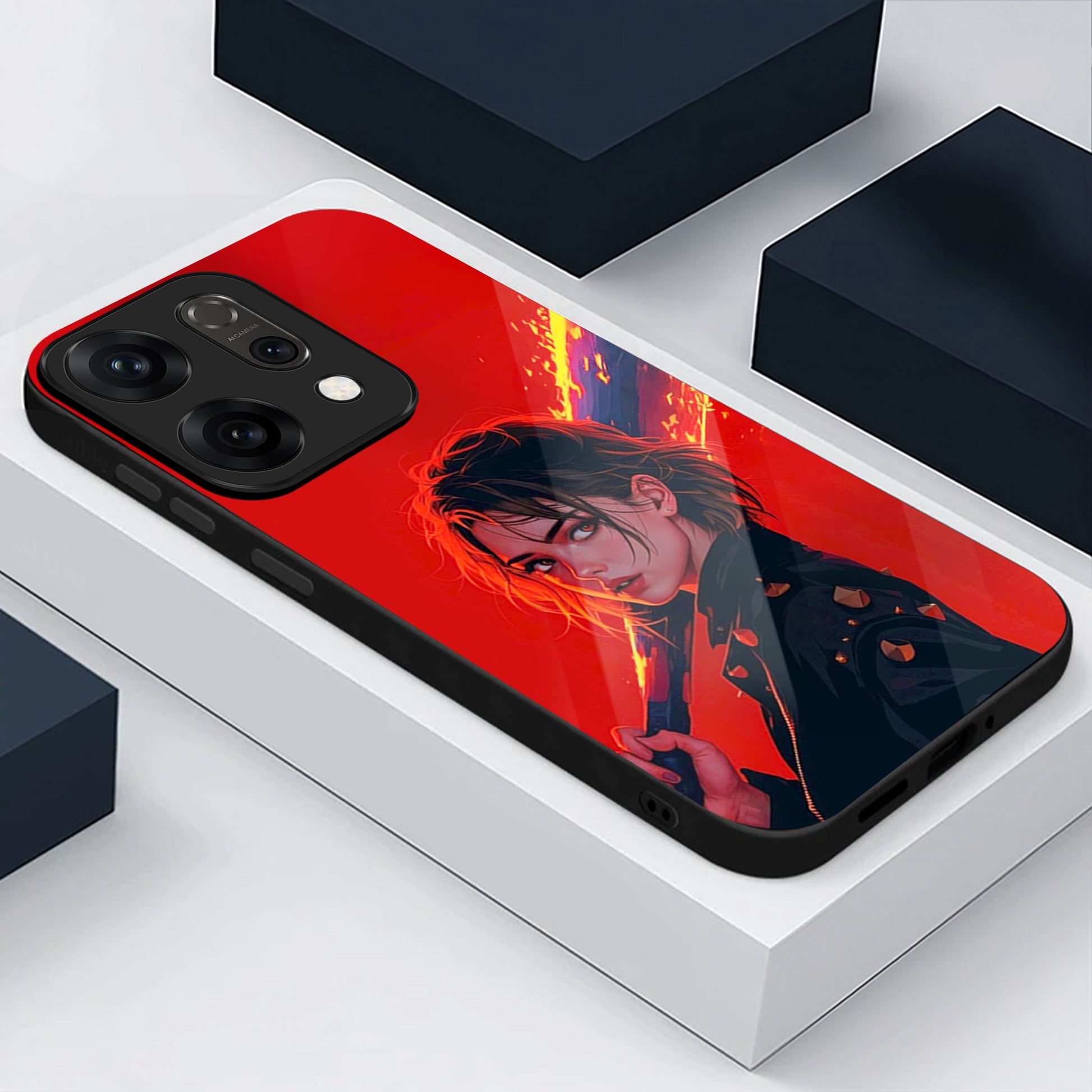Oppo Reno 14 5G Premium Acrylic Shockproof Glass Back Case (Flame Case)