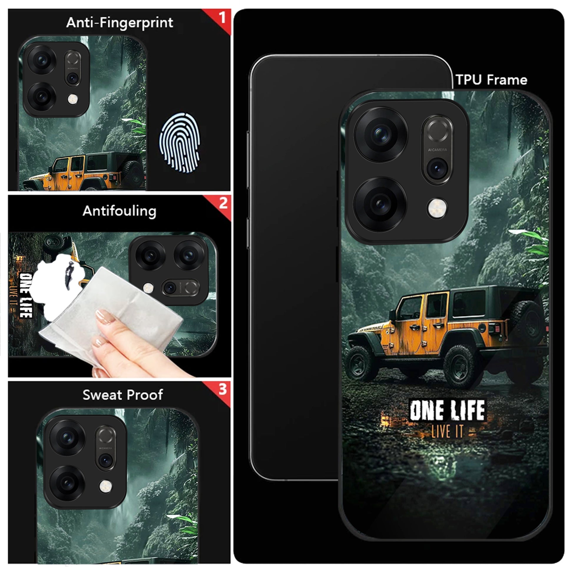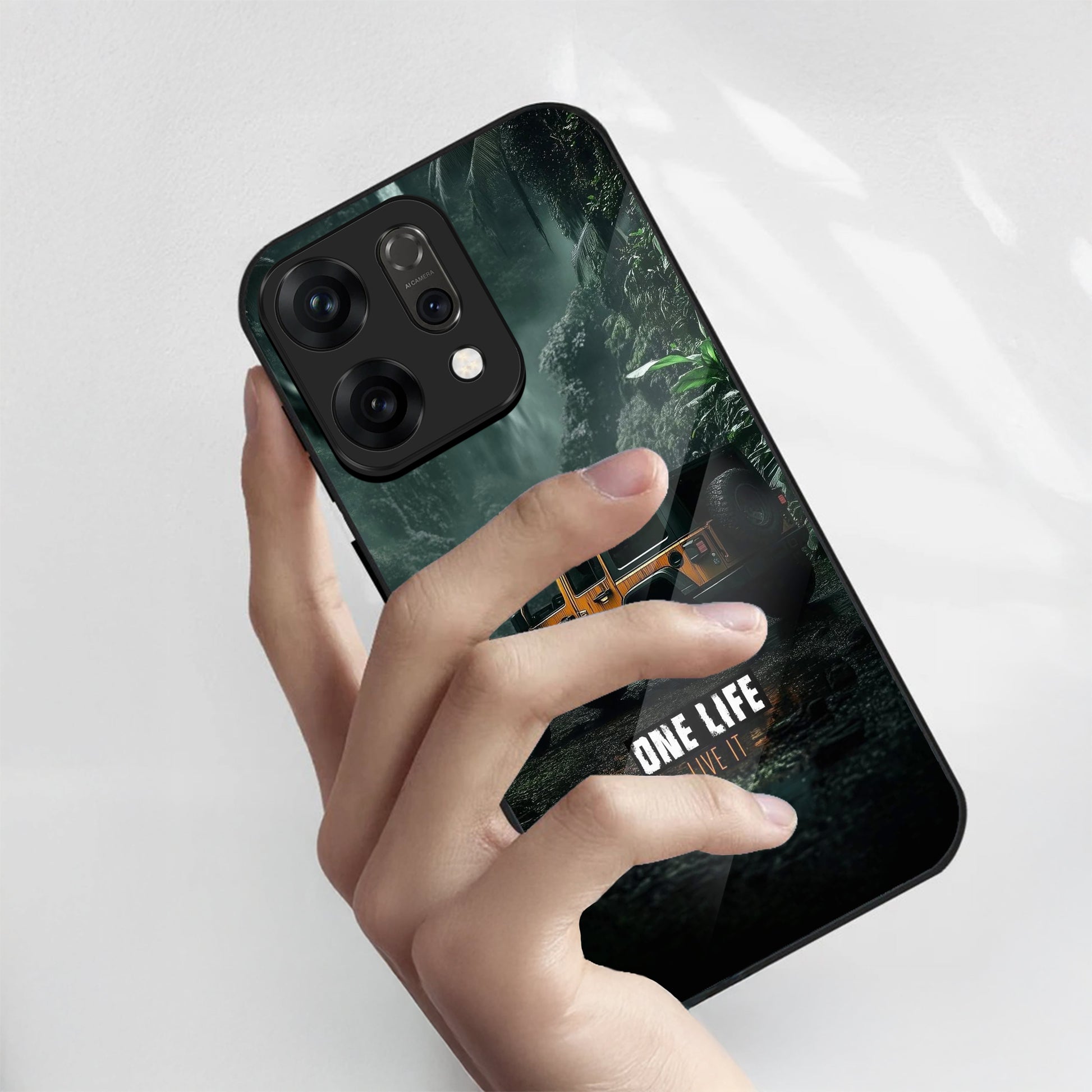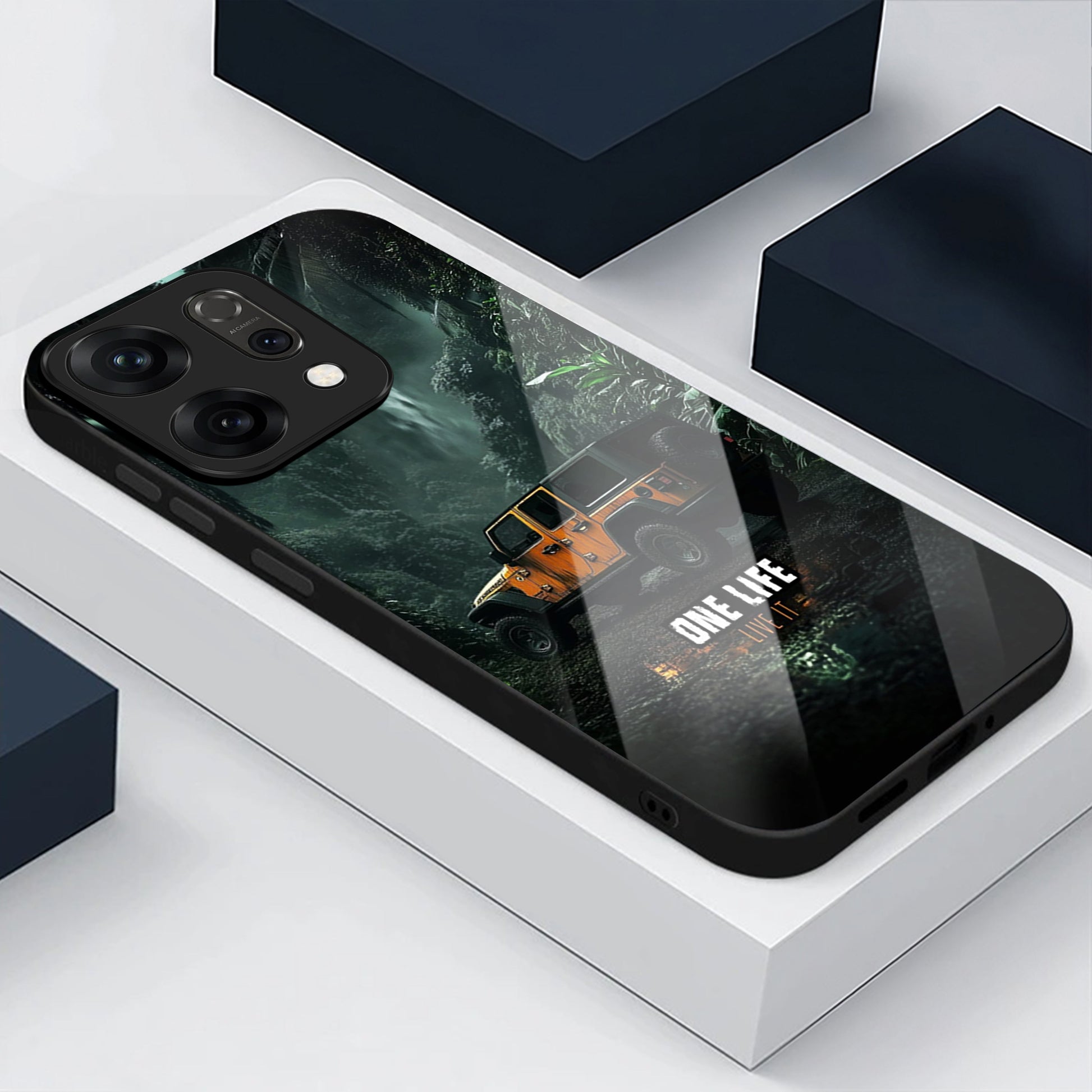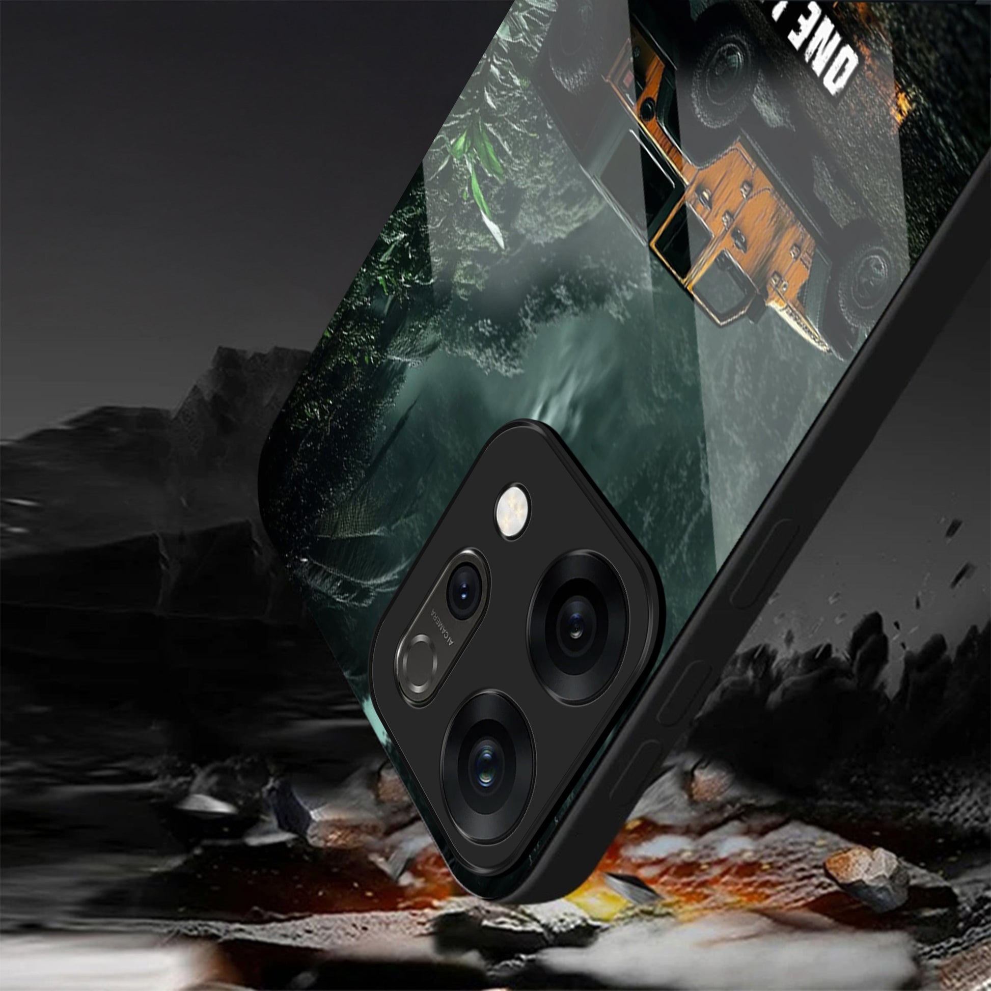Oppo Reno 14 5G Premium Acrylic Shockproof Glass Back Case (Jeep Case)