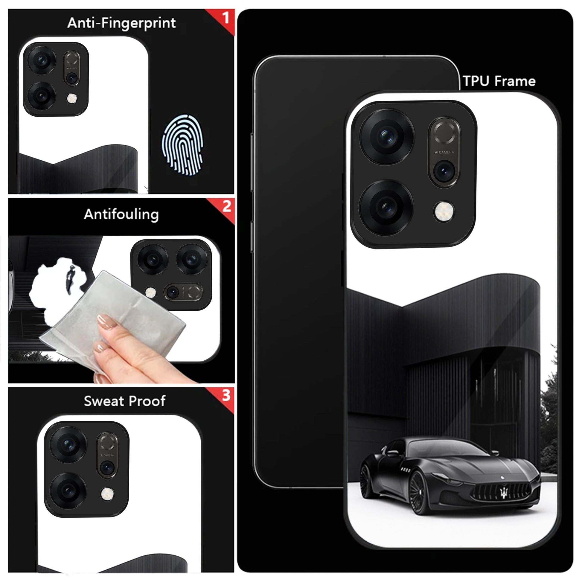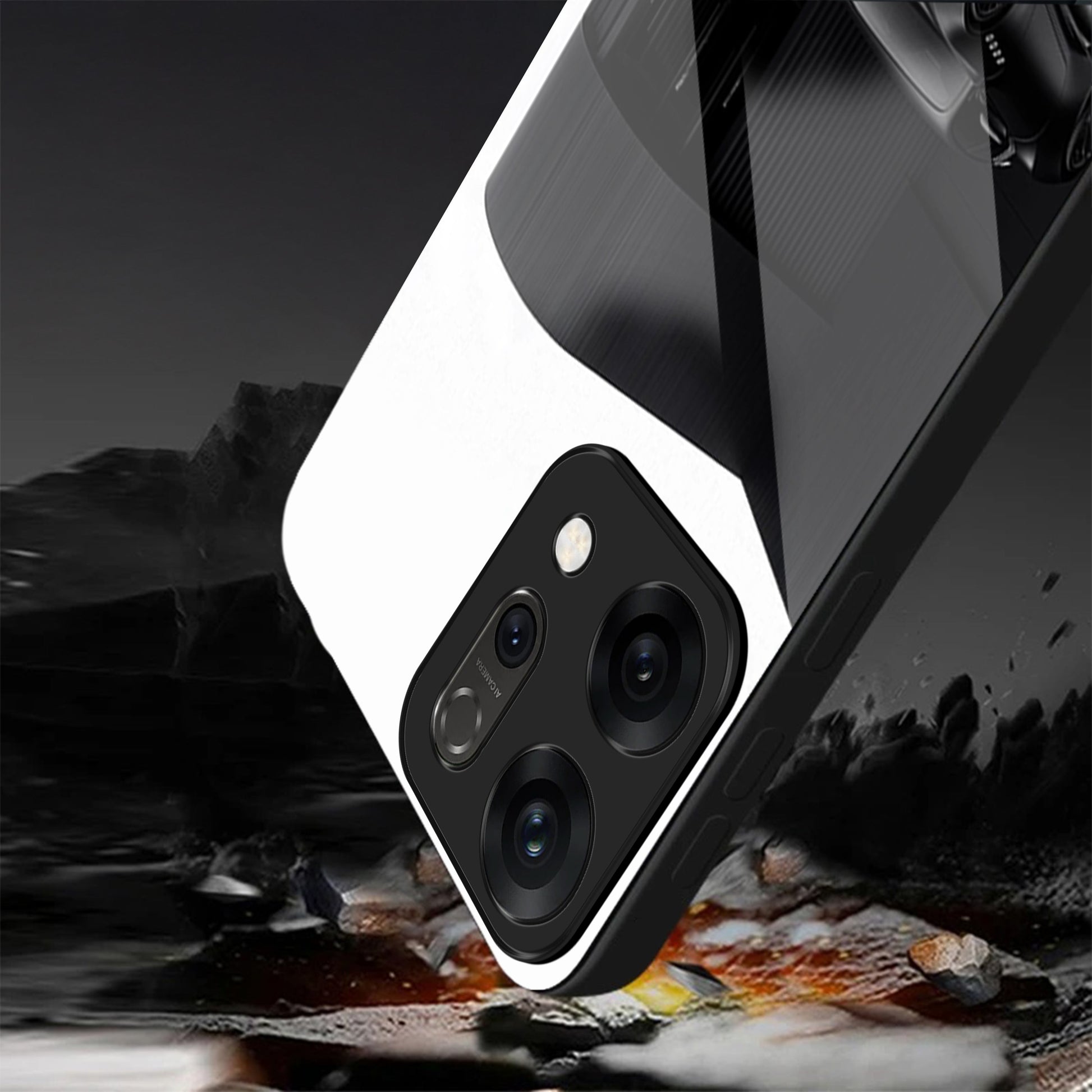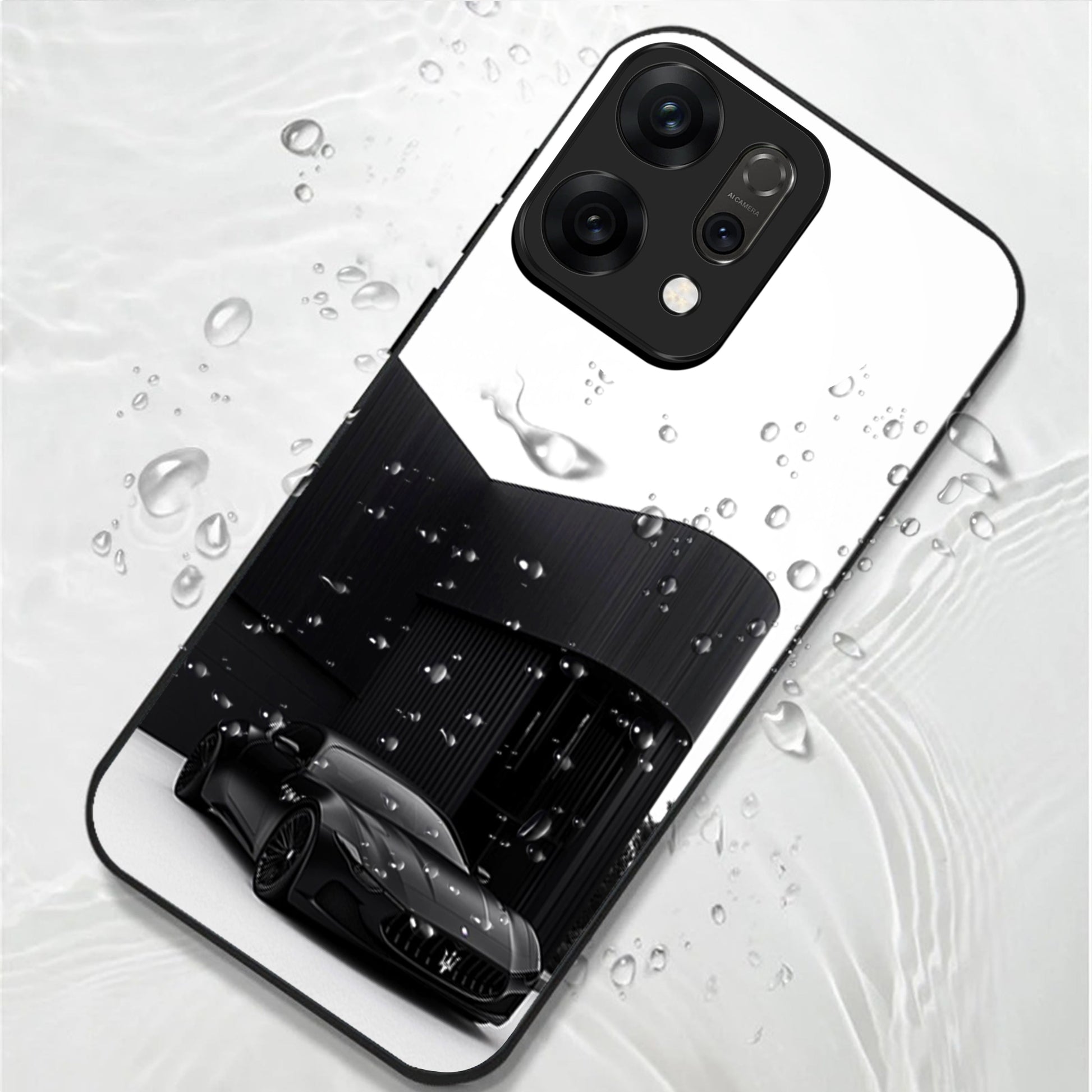Oppo Reno 14 5G Premium Acrylic Shockproof Glass Back Case (monochrome Maserati)