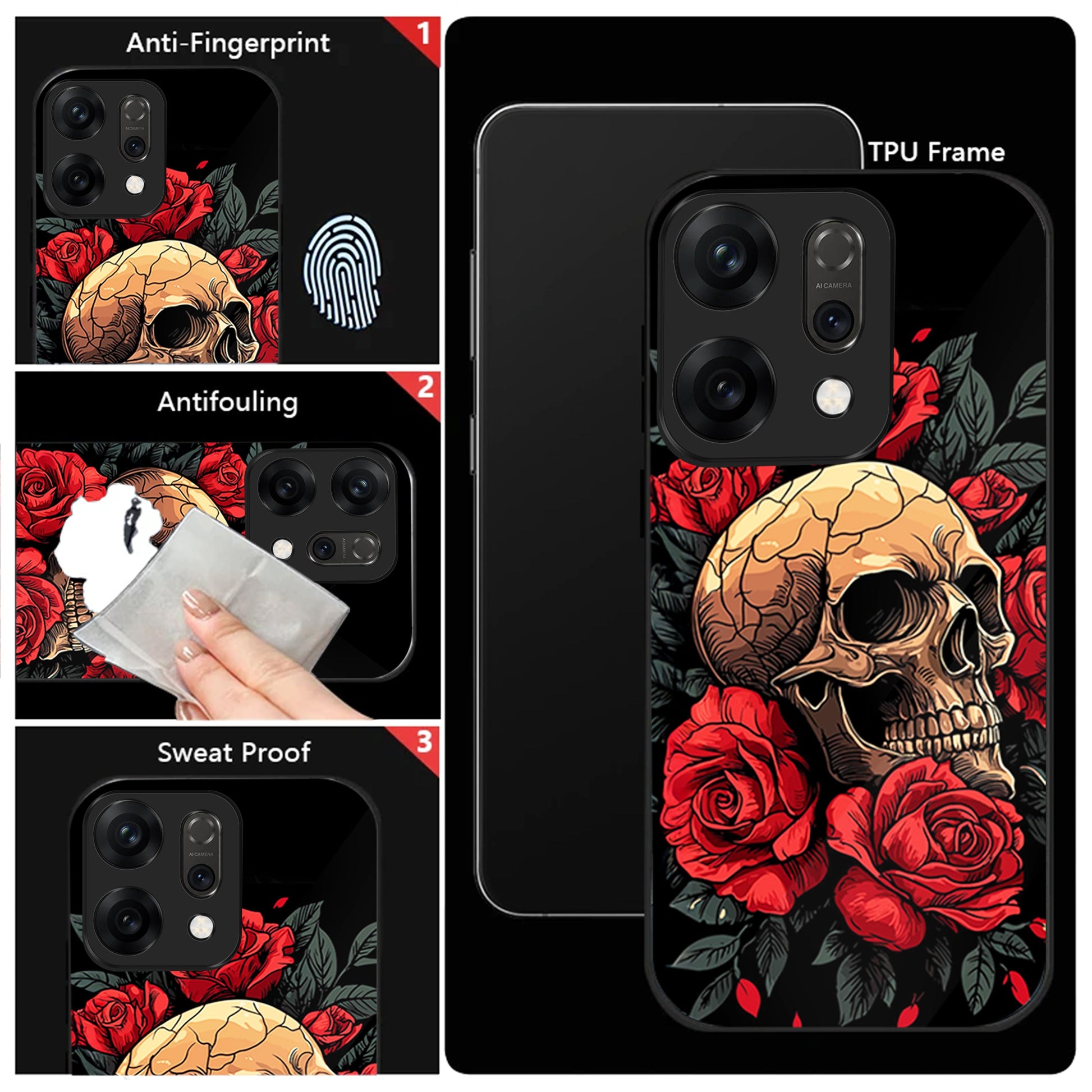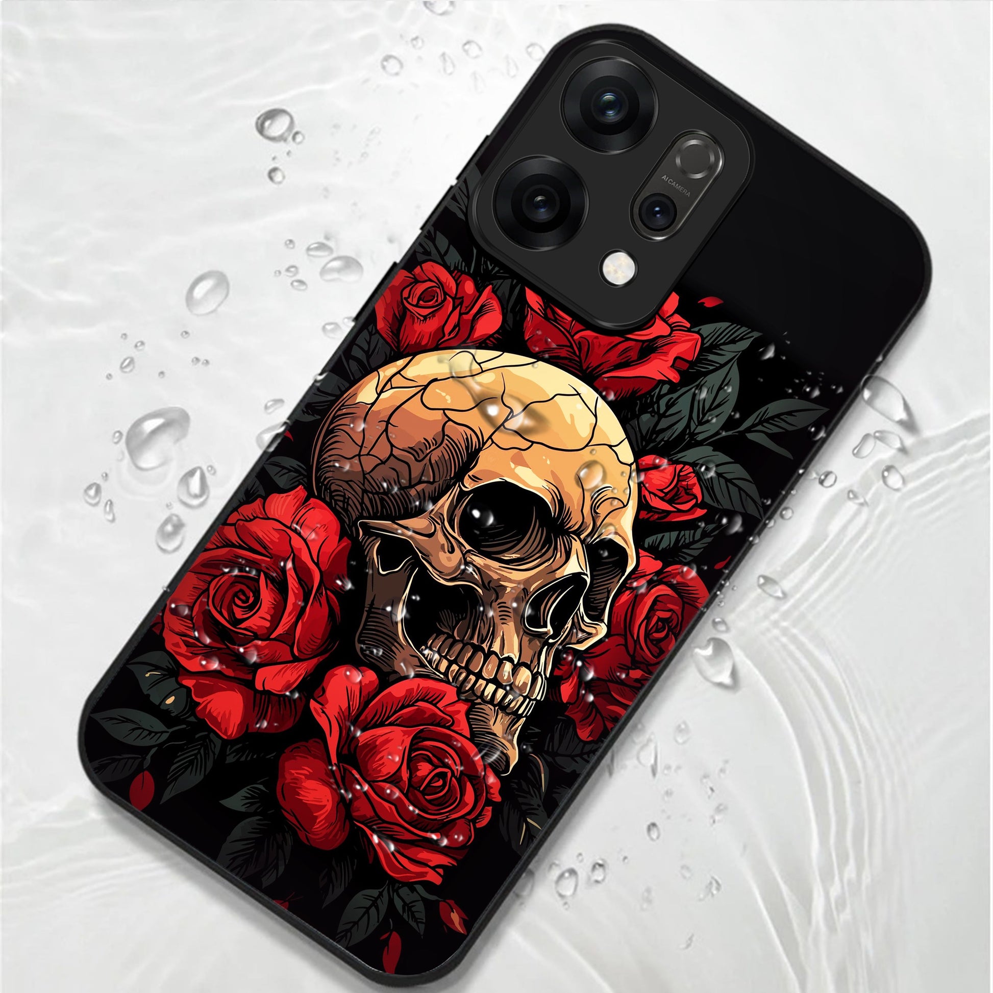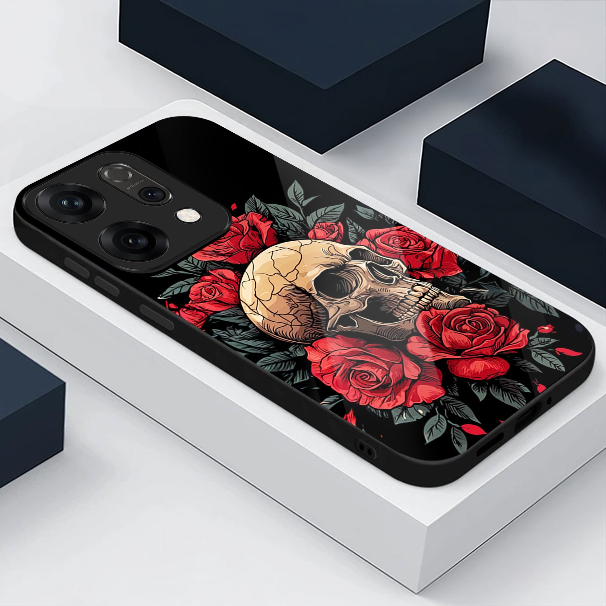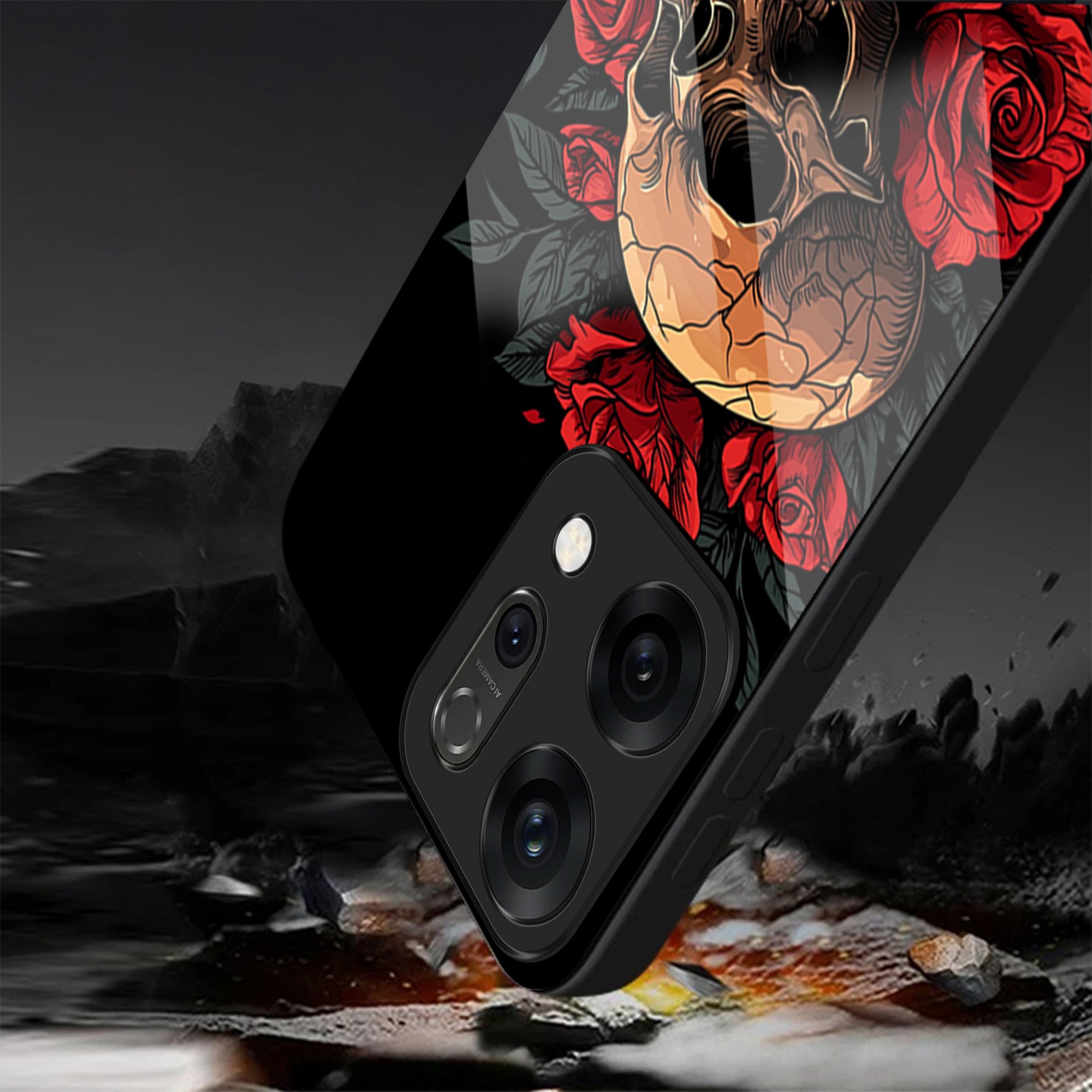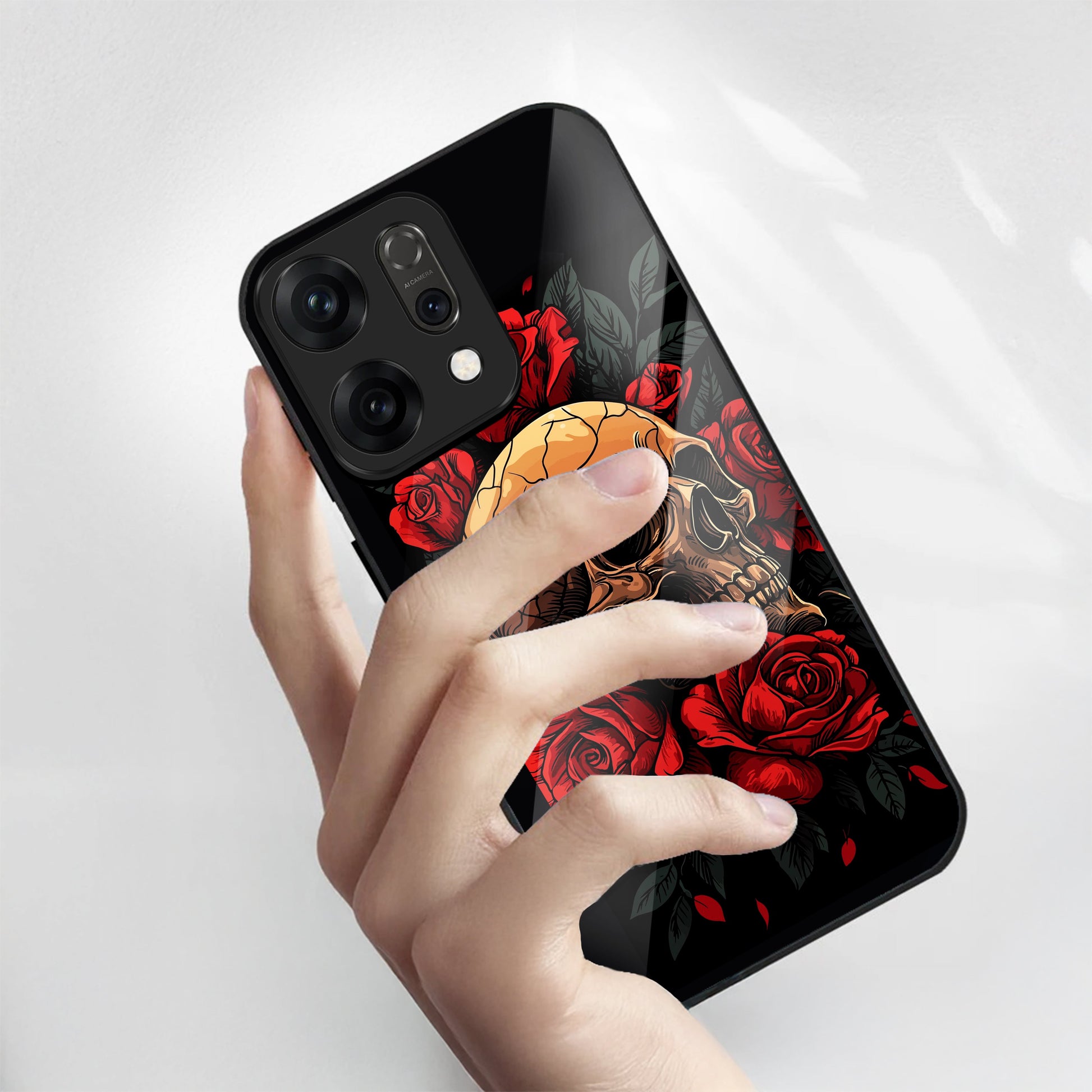 Oppo Reno 14 5G Premium Acrylic Shockproof Glass Back Case (Rose Skull)