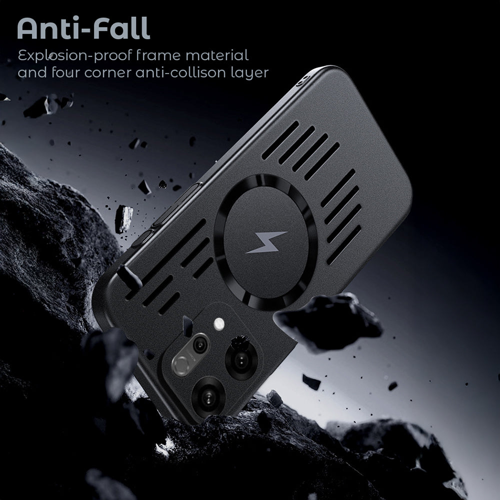MagSafe back case for Oppo Reno 14 5G. Reliable protection is ensured with this rugged metal. An anti-scratch matte finish is provided, secure grip is enhanced, and MagSafe compatibility is supported for daily use.
