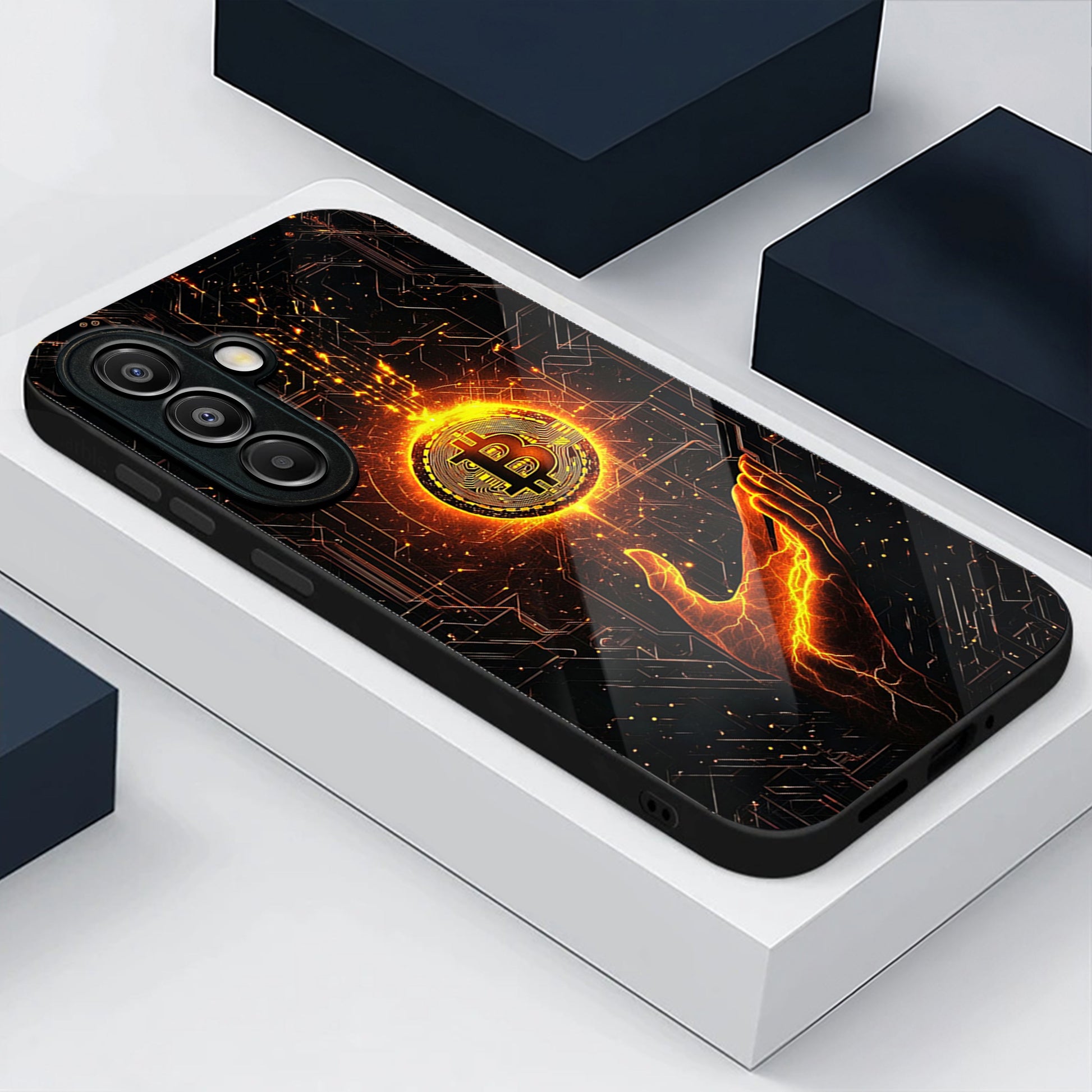 Samsung Galaxy A36 Premium Acrylic Shockproof Glass Back Case (Bitcoin Glow)