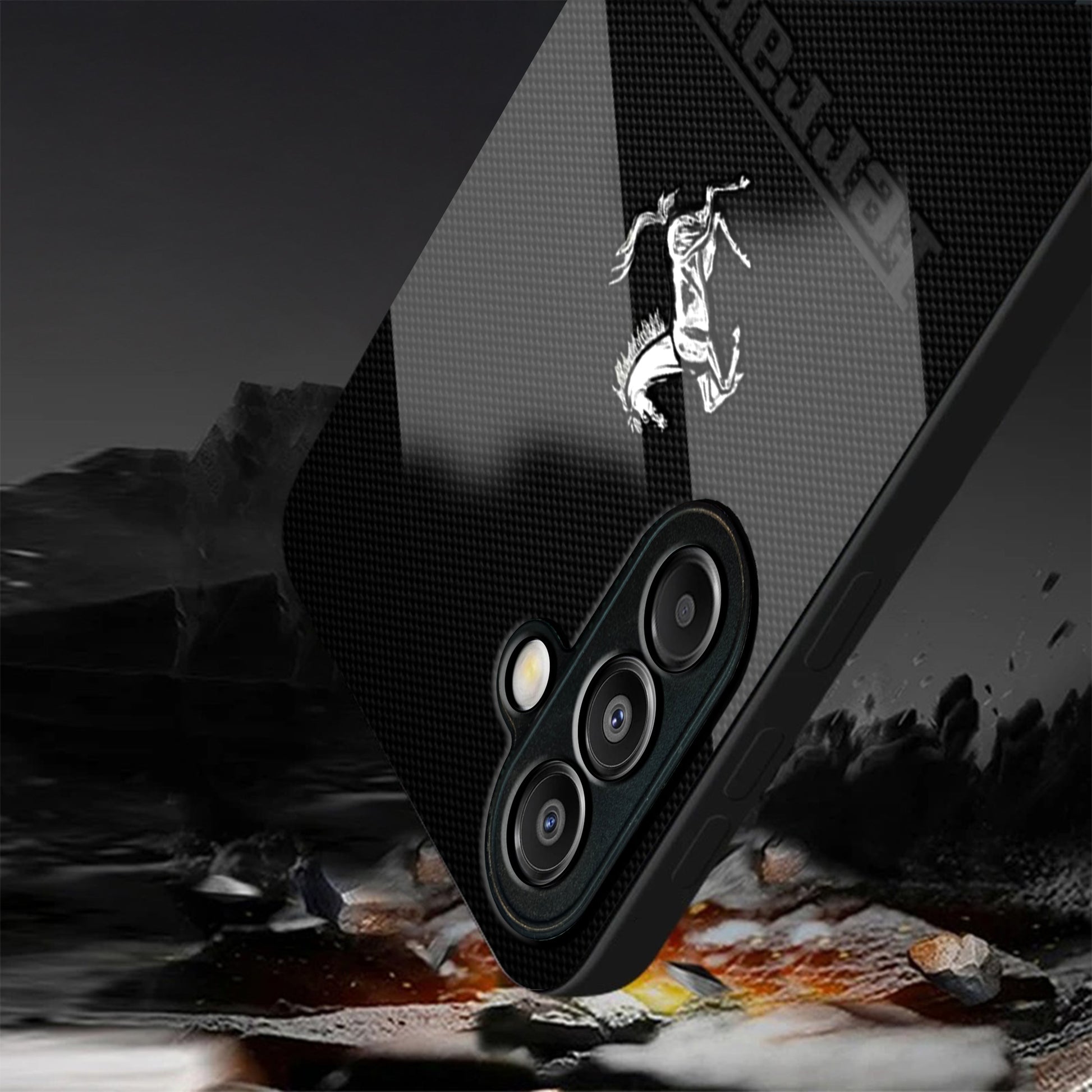 Samsung Galaxy A36 Premium Acrylic Shockproof Glass Back Case (Ferrari Carbon Fiber)