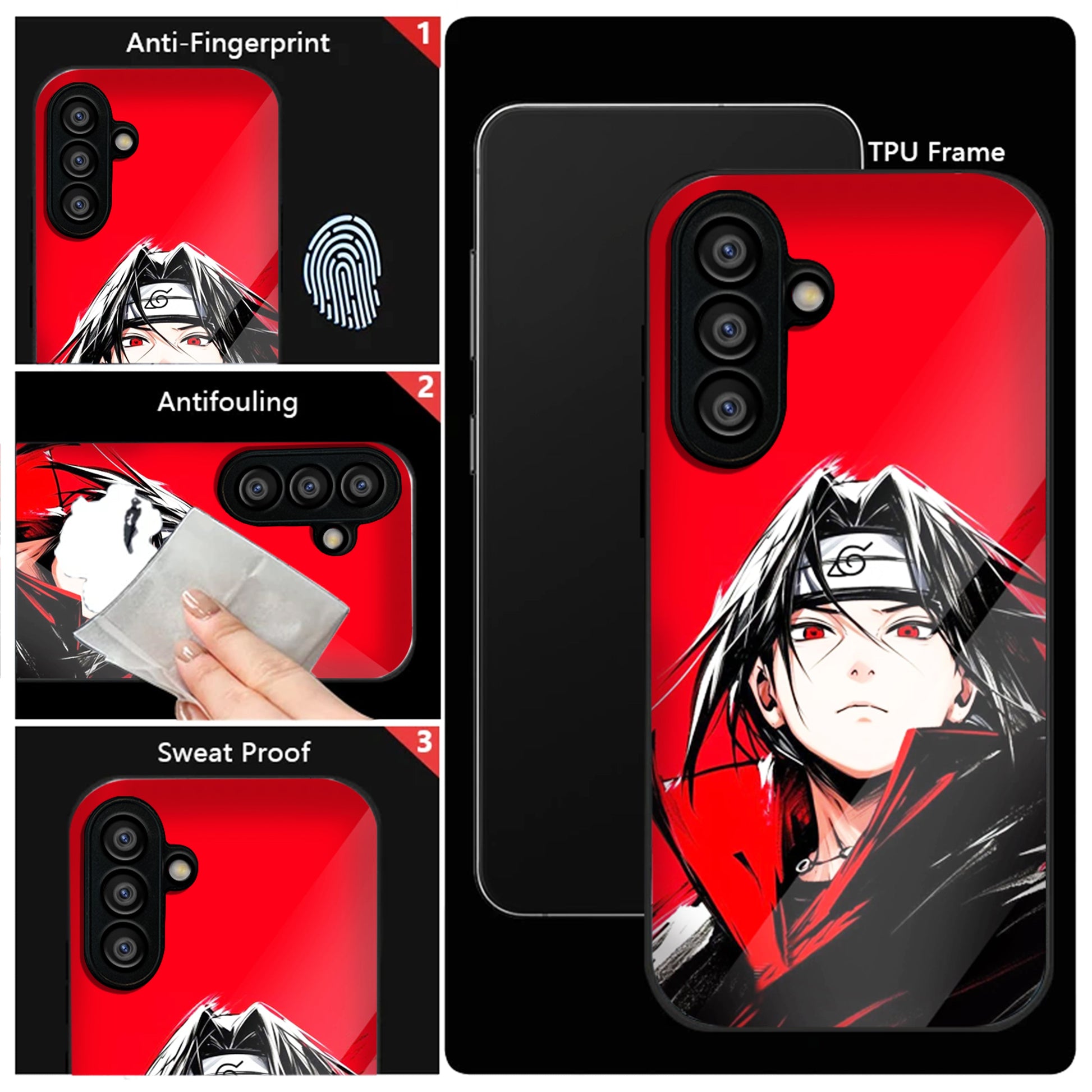 Samsung Galaxy A36 Premium Acrylic Shockproof Glass Back Case (Stylish Uchiha)