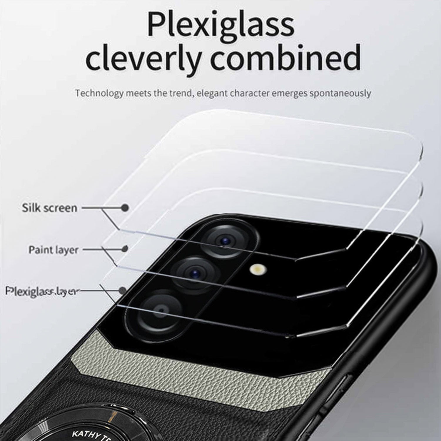 Give your Samsung Galaxy A56 5G a case that knows how to turn heads. The leather bottom feels soft, the plexiglass top adds shine, and the magnifier lens accent creates a standout look. Add in the foldable ring stand for comfort and convenience. Slim, stylish, and unique, it’s a case with personality.