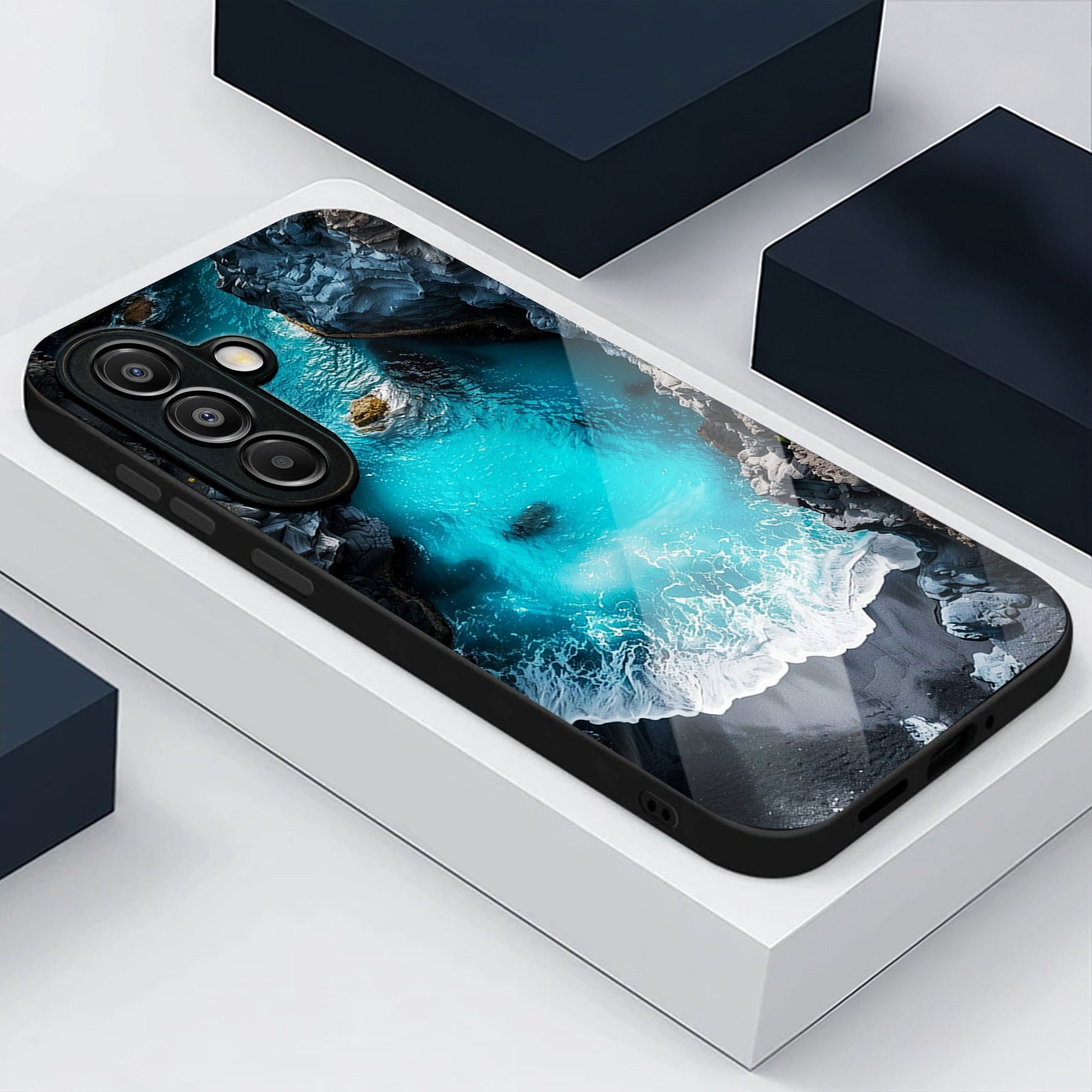 Samsung Galaxy A56 Premium Acrylic Shockproof Glass Back Case (rocky cliff)