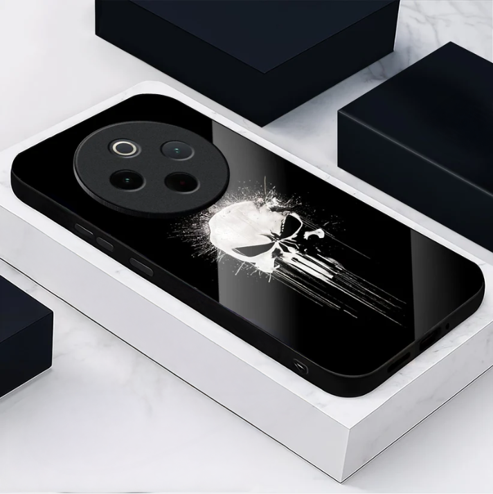 Vivo T4 5G Premium Acrylic Shockproof Glass Back Case (Punisher Skull)
