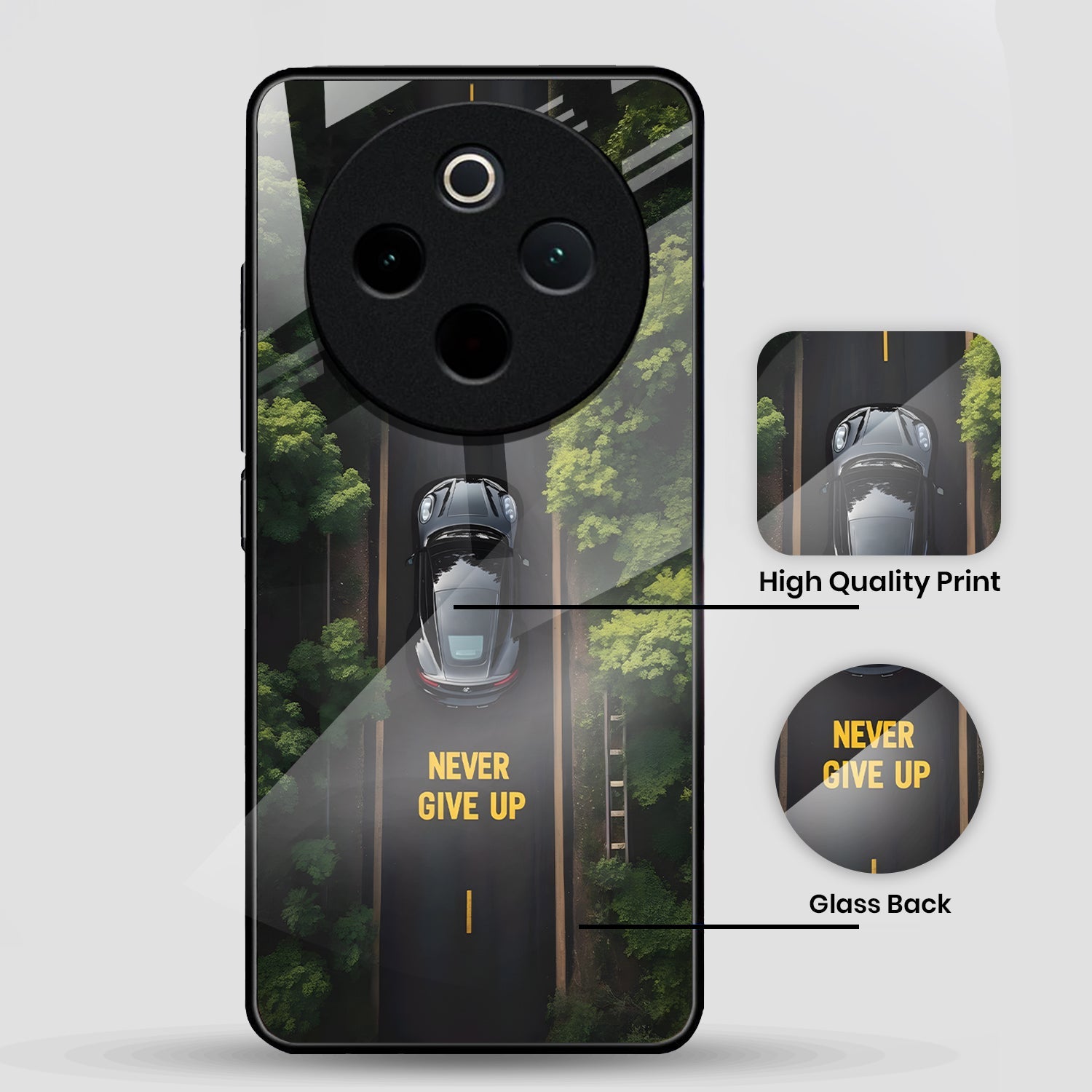 Vivo T4 5G Premium Acrylic Shockproof Glass Back Case (Road Never Give Up)