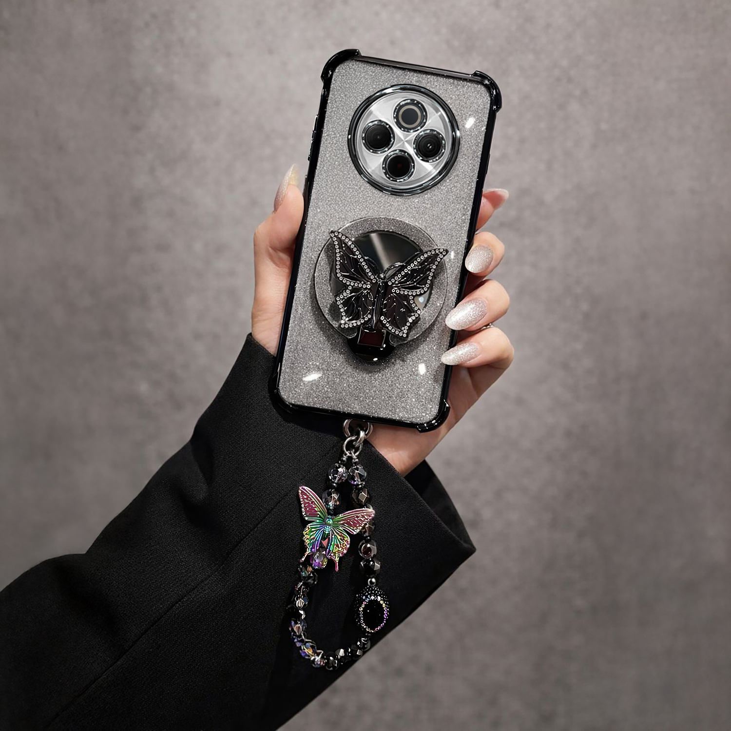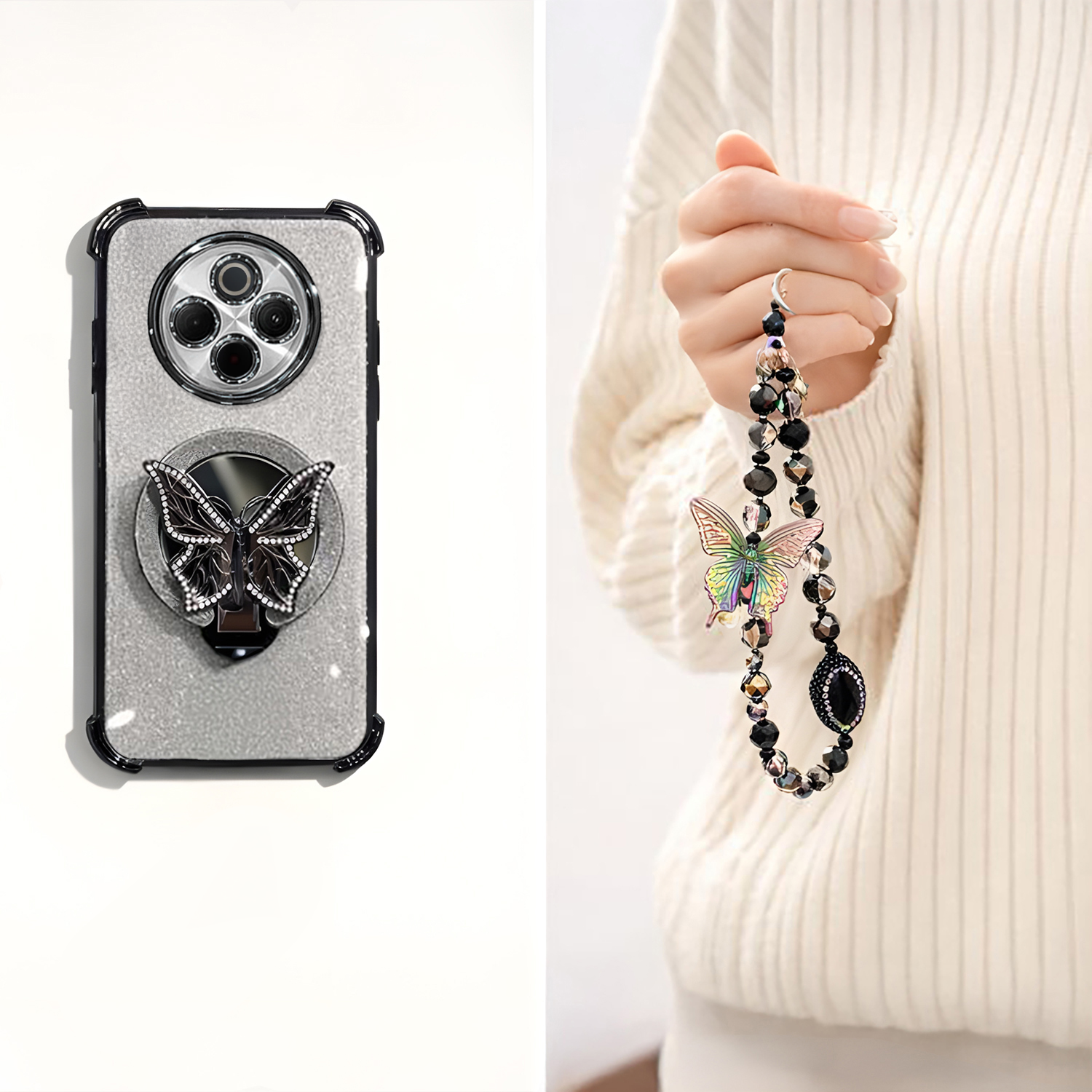 Vivo T4 5G Shockproof Butterfly Stand Case with Charm Strap