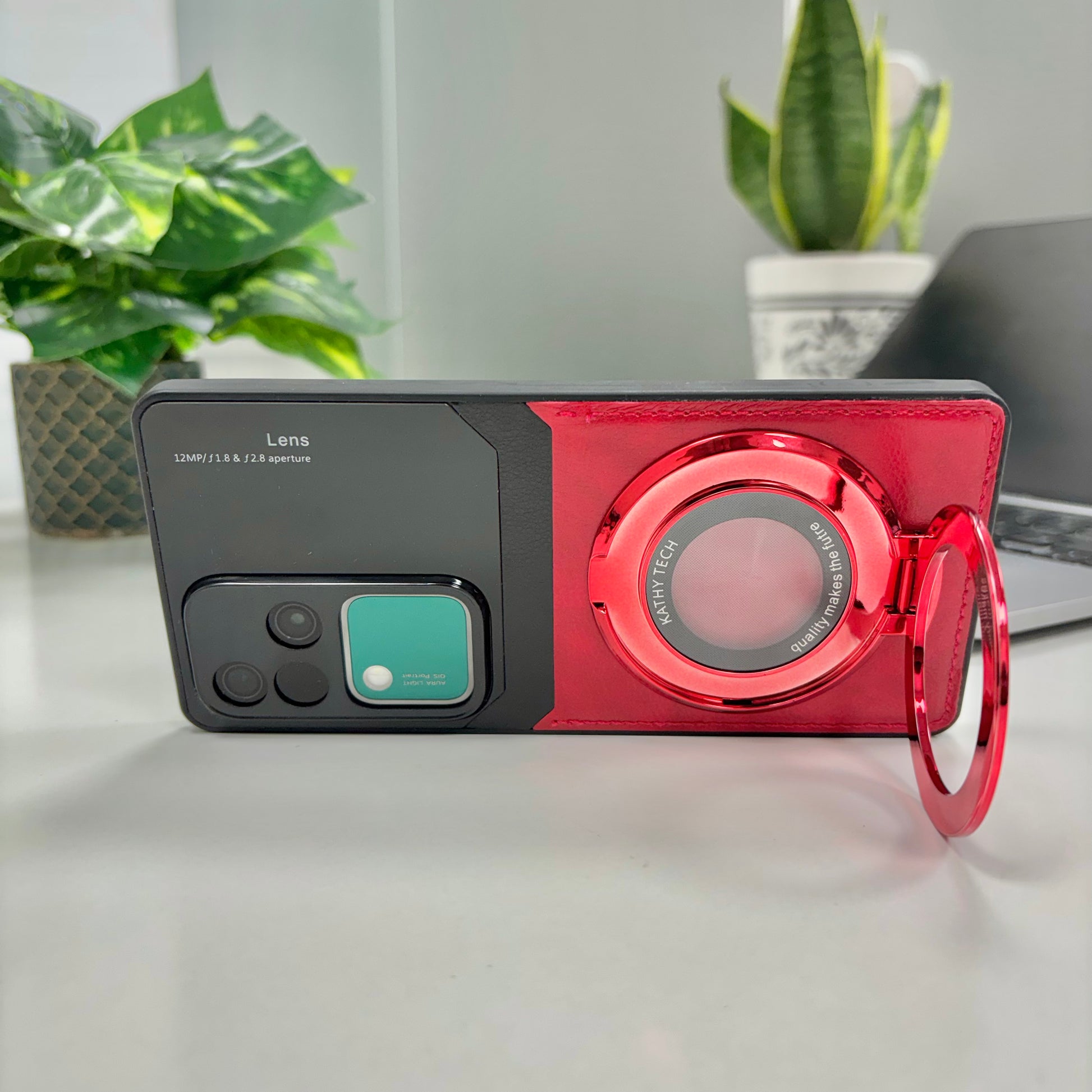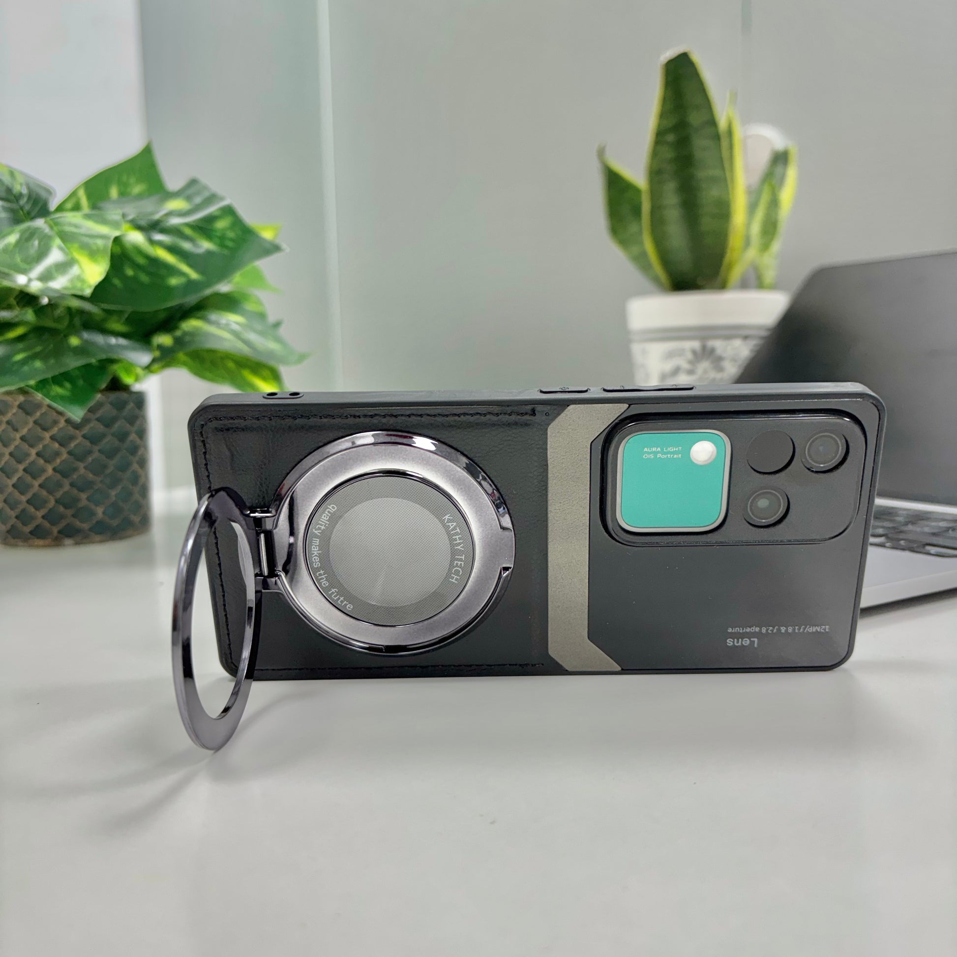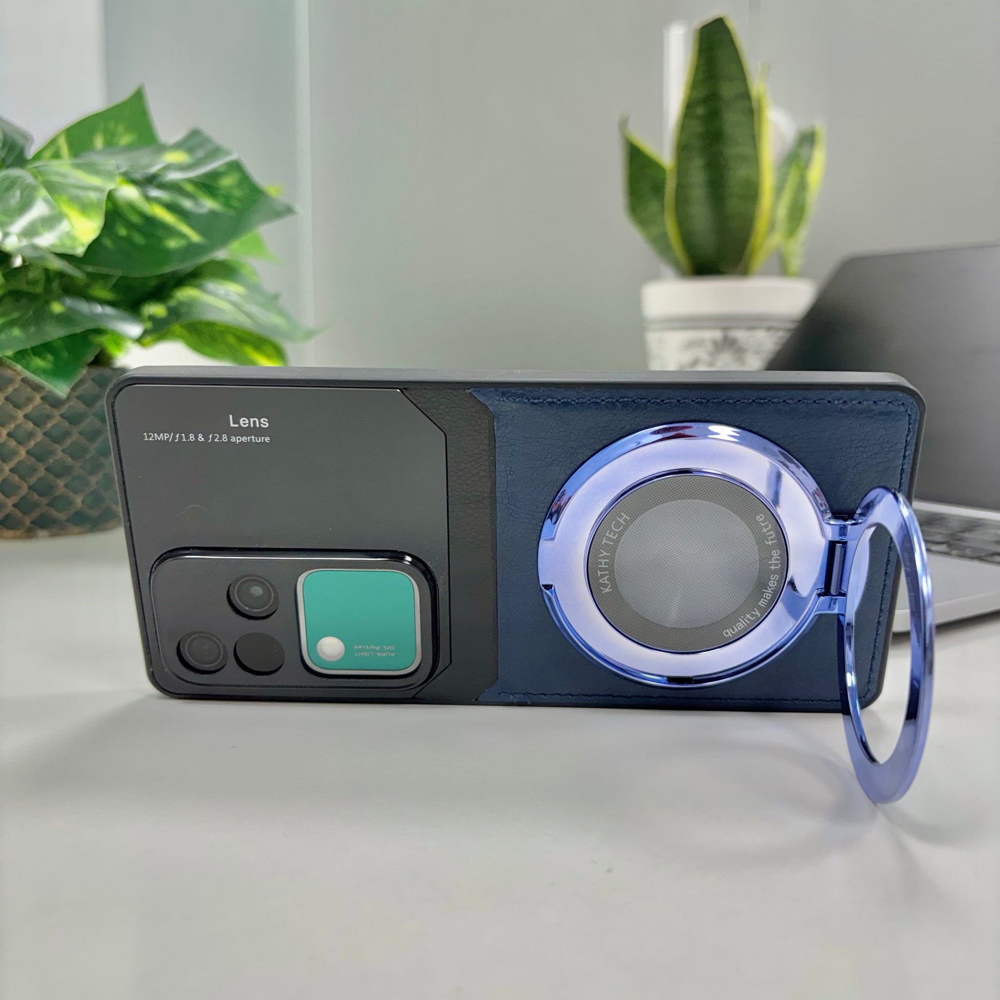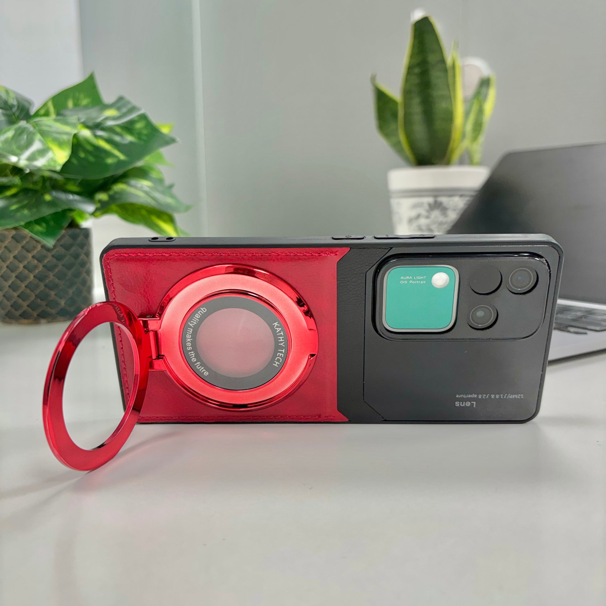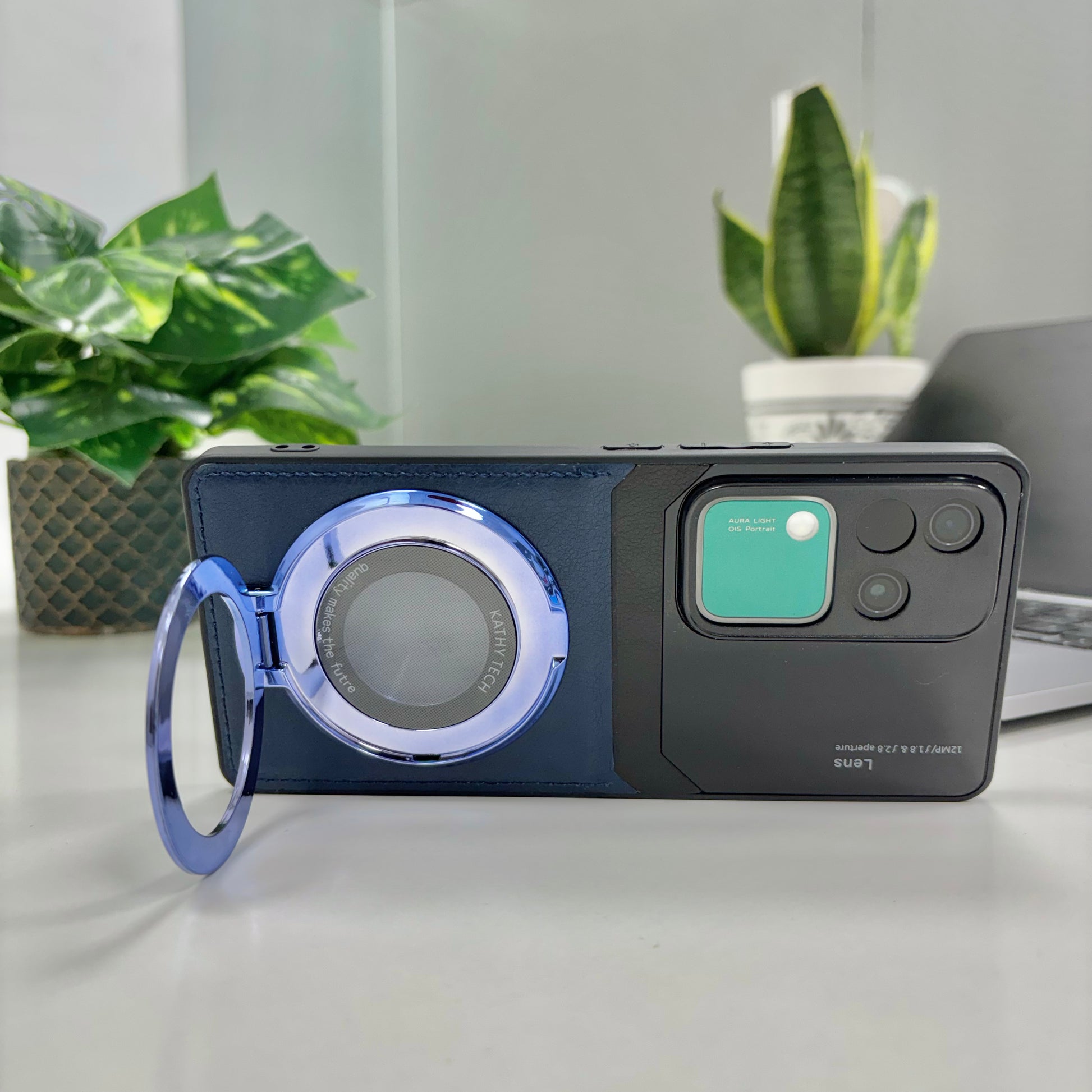Your Vivo V30 Pro 5G deserves a case with character. The leather base feels smooth and refined, the plexiglass top adds shine, and the magnifier lens detail gives it a playful touch. The foldable ring stand adds comfort for daily use. Slim, stylish, and fun, it’s protection with personality.