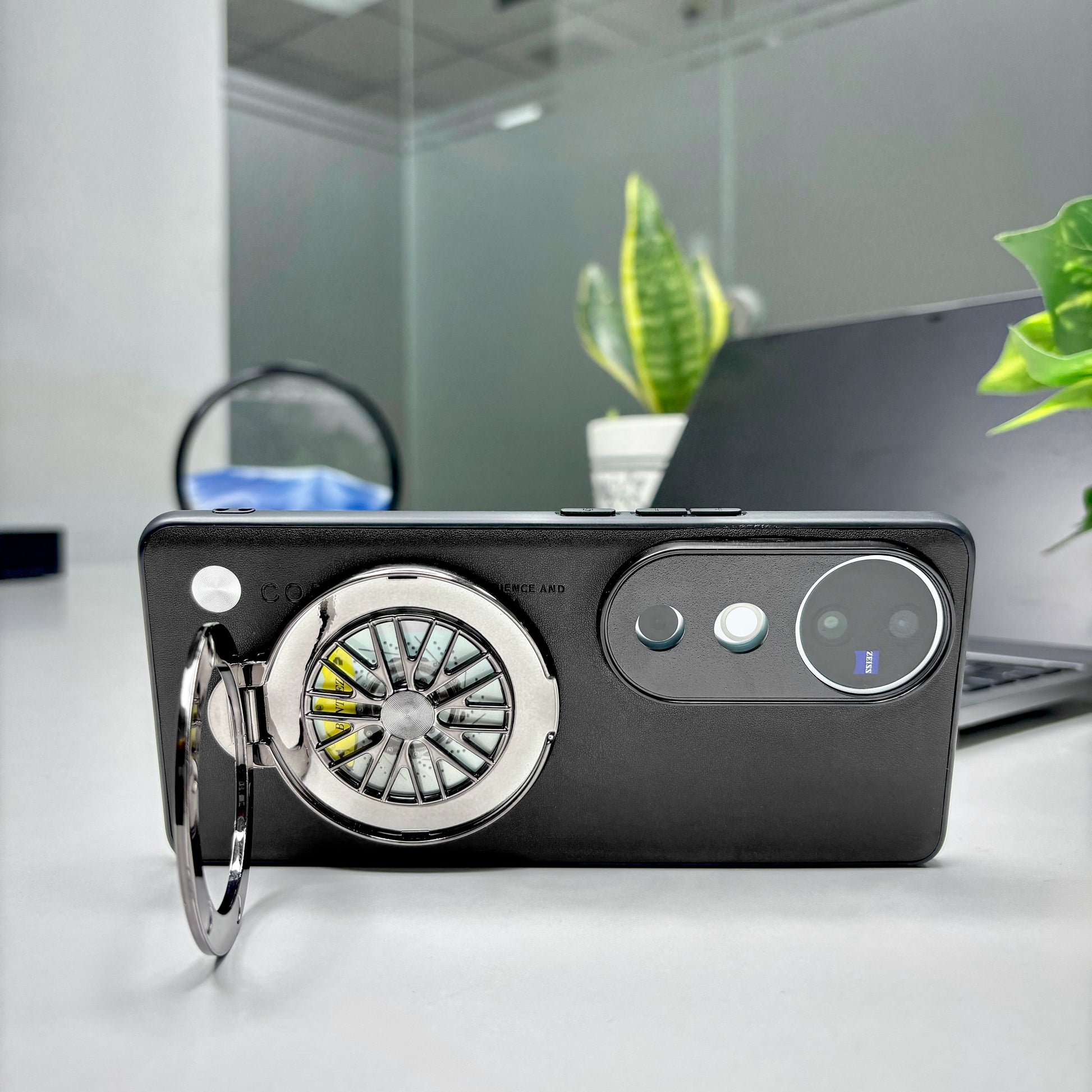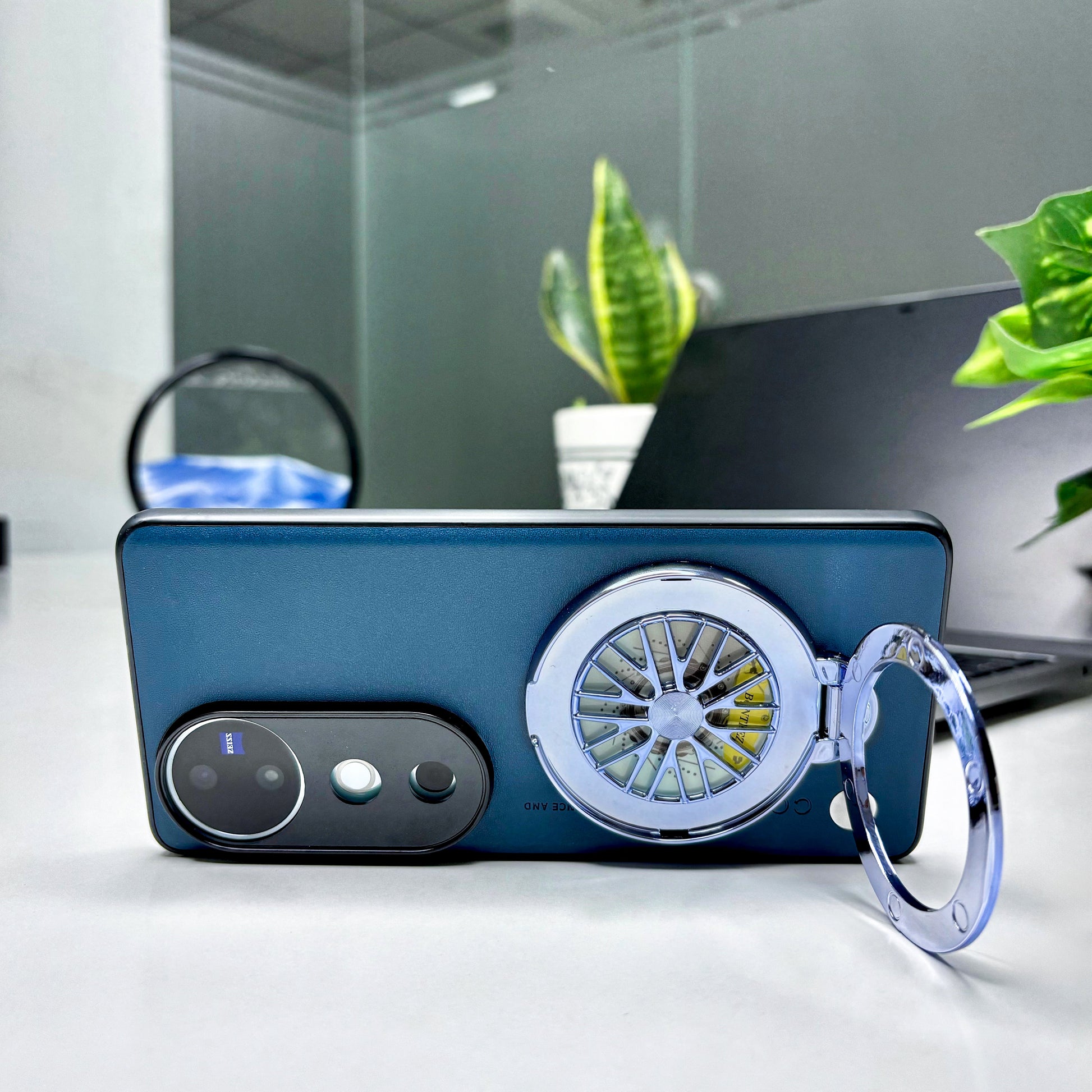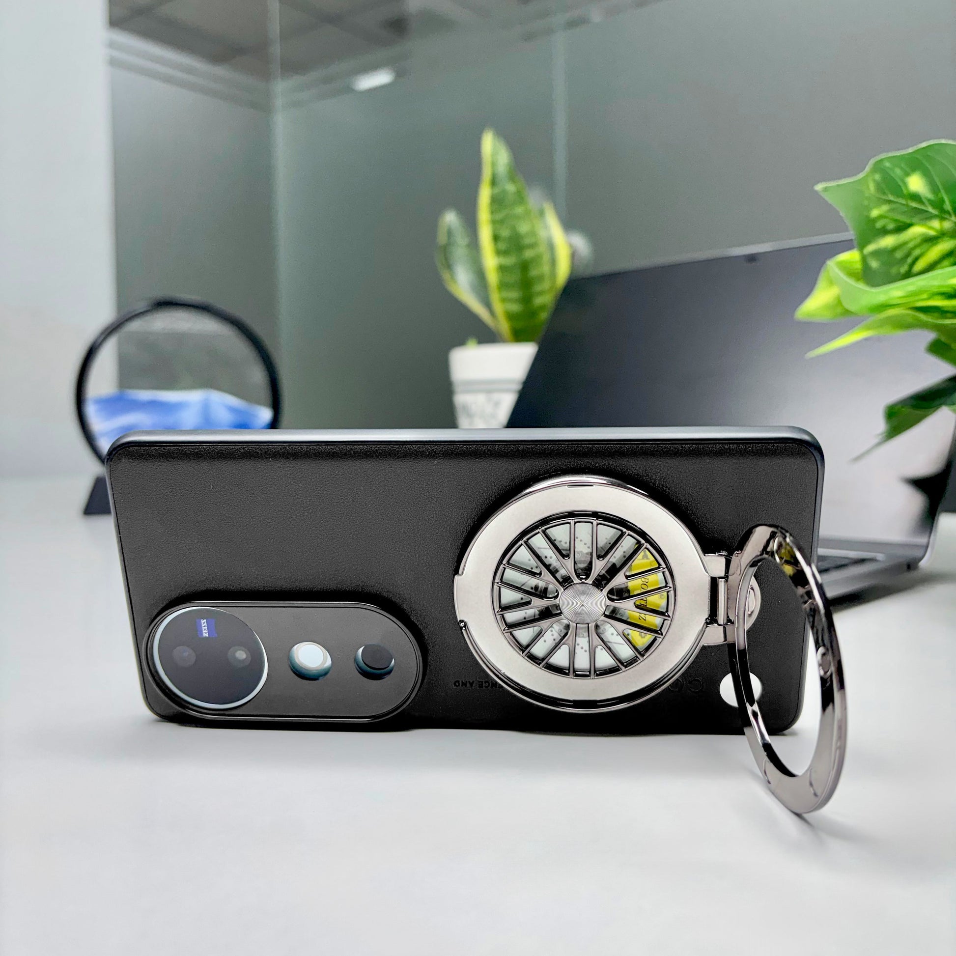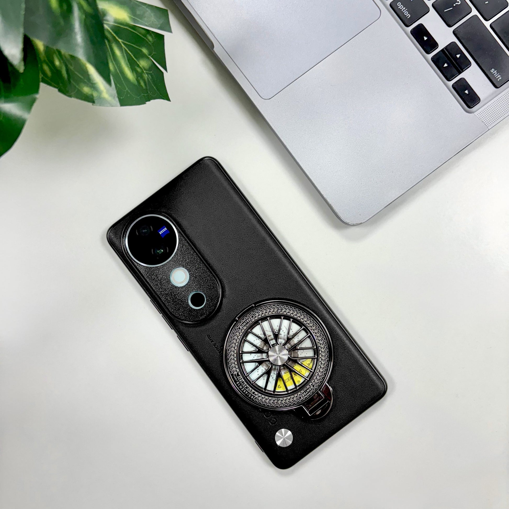 This Vivo V40 5G Vegan Leather Cover is where elegance meets innovation. Crafted from soft, textured vegan leather, it feels premium and secure in hand. The rotating fidget wheel helps you unwind, while the foldable ring stand offers easy, hands free viewing. Slim, sleek, and made for modern lifestyles.