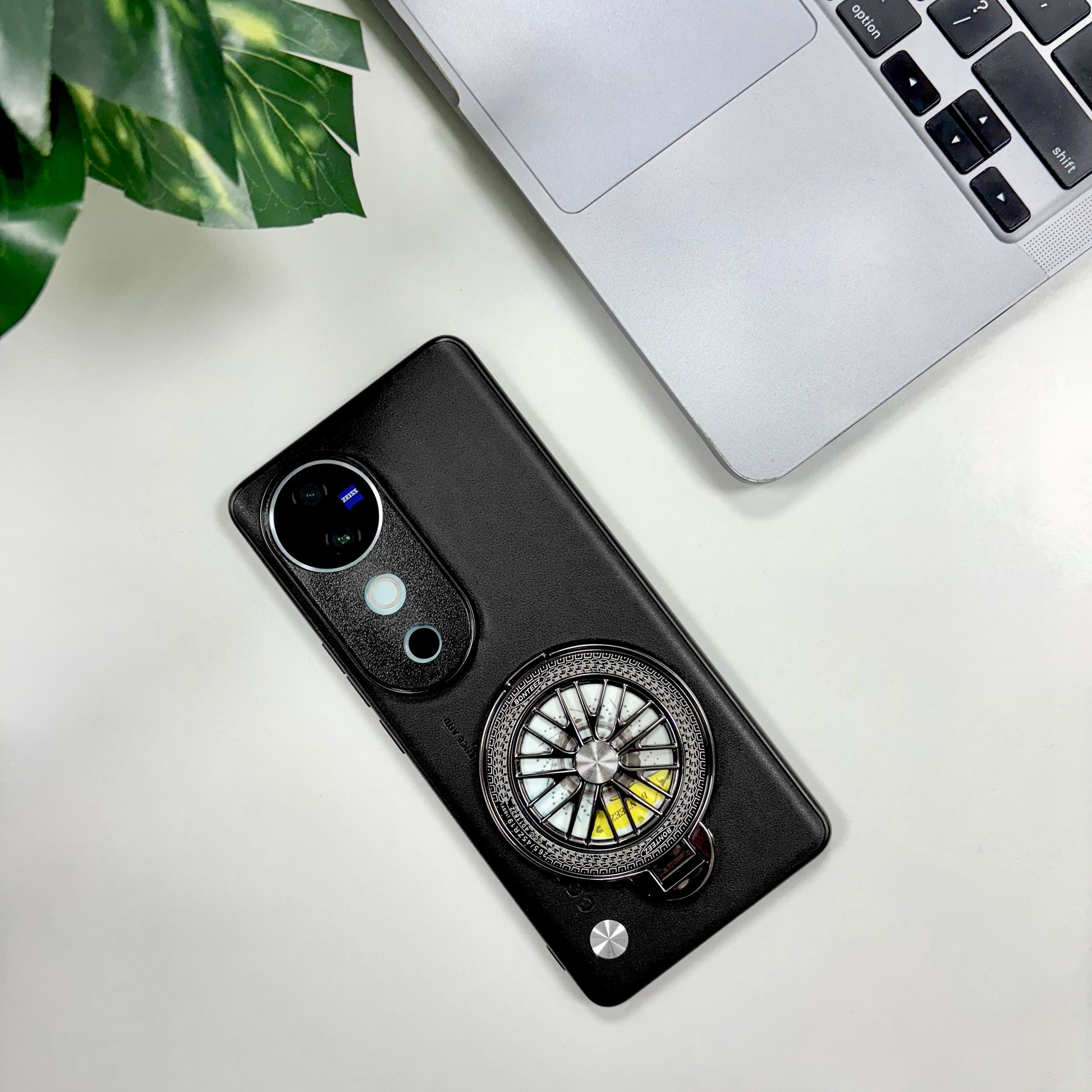 Designed for those who love function with flair, this Vivo V40 Pro 5G Vegan Leather Cover pairs a smooth, grain-textured finish with everyday comfort. The Stress Buster Wheel offers a calming spin, and the foldable ring stand doubles as a secure grip. Stylish, slim, and smart, this Vegan Leather Case adds personality to protection.
