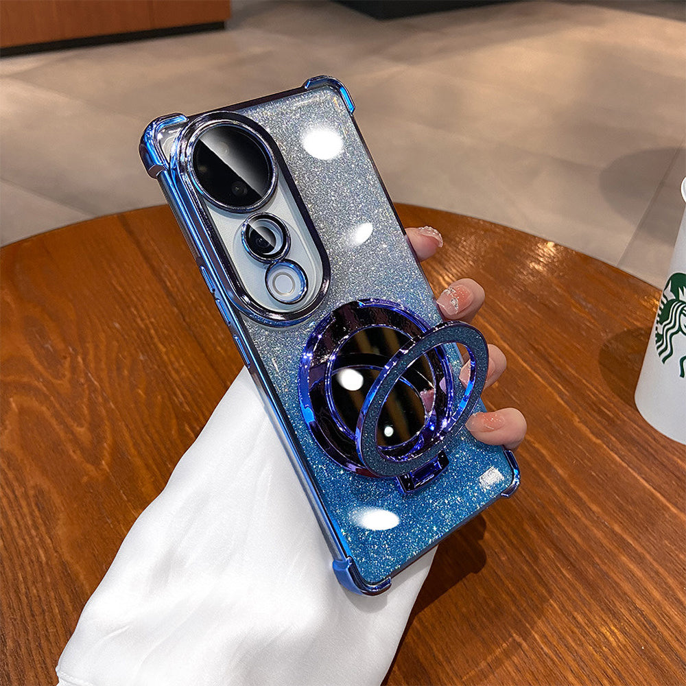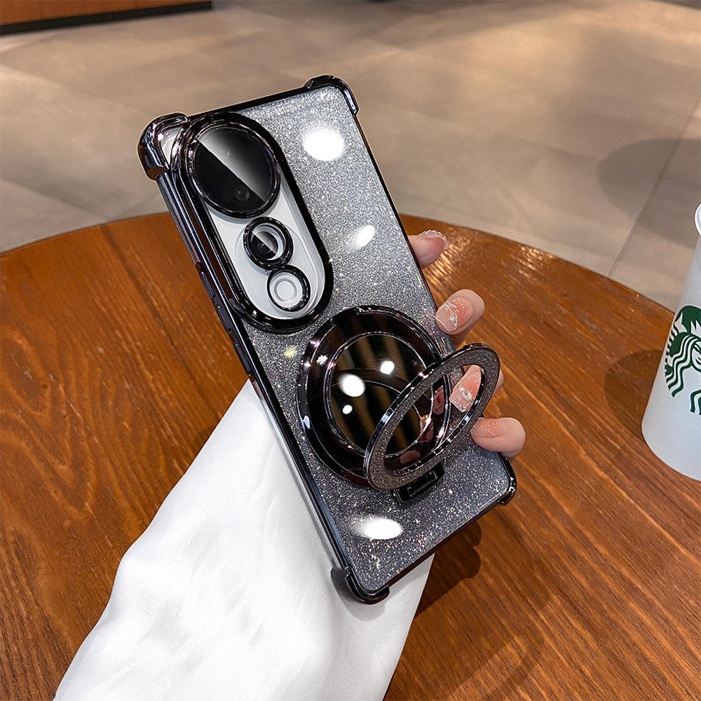 Turn your phone into an accessory. The Sparkle Mirror Grip Case for Vivo V40 Pro 5G pairs a glittery mirror back with real drop protection. Four airbags keep your phone safe, while the built in foldable ring stand is perfect for scrolling or streaming. This Glitter Mirror Ring Stand Case is glamorous, protective, and effortlessly practical
