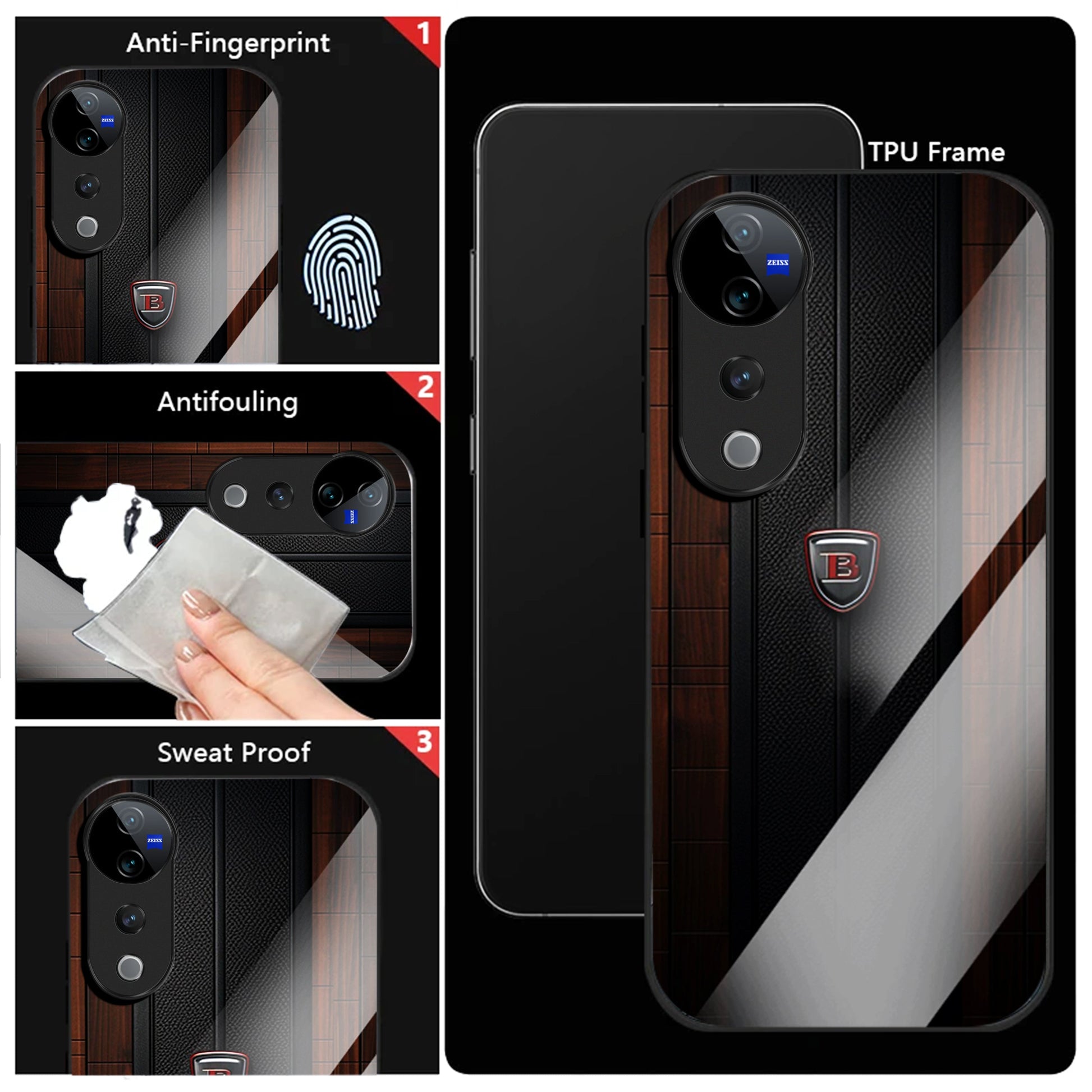 Vivo V40 Pro 5G Premium Acrylic Shockproof Glass Back Case (Carbon Oak)