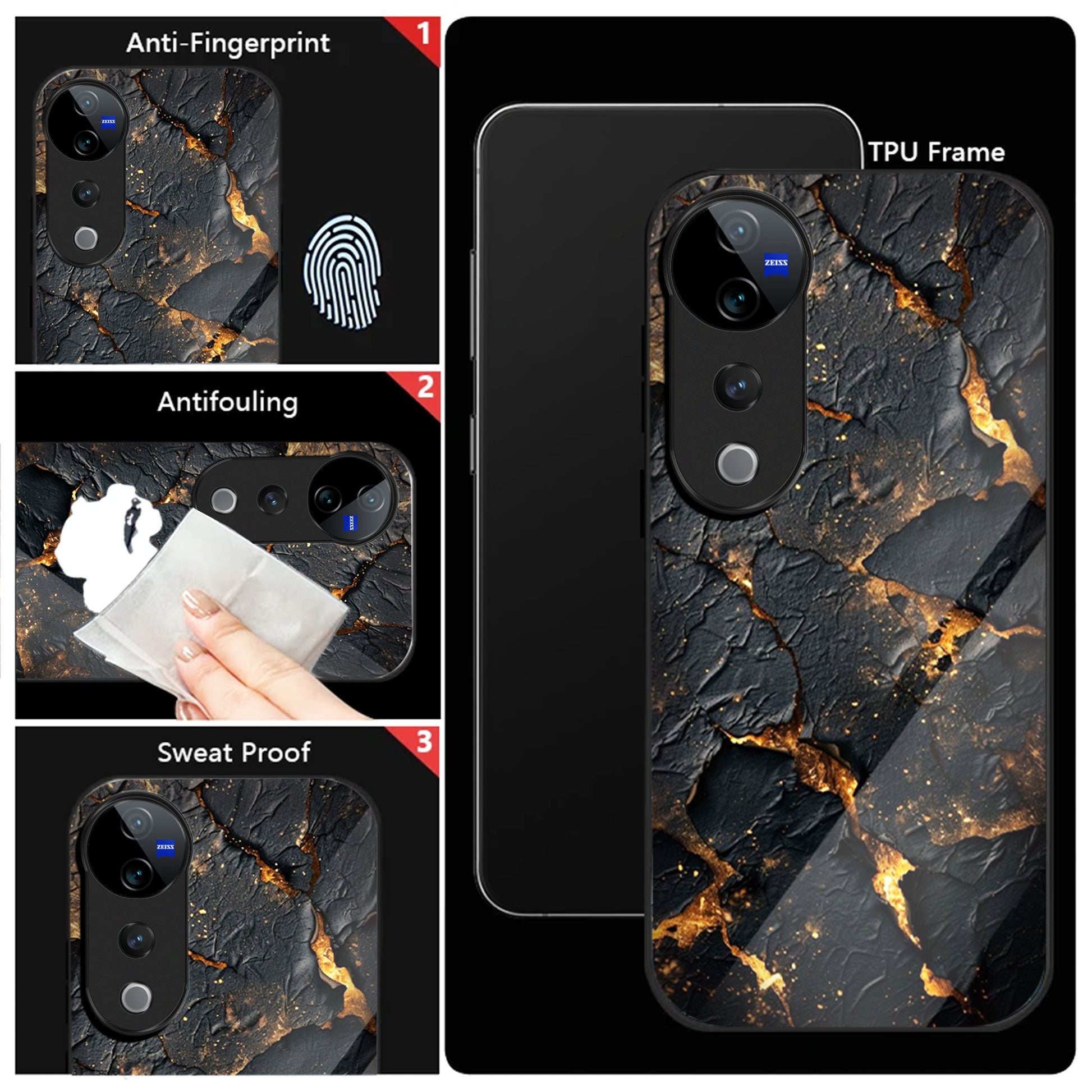 Vivo V40 Pro 5G Premium Acrylic Shockproof Glass Back Case (Volcanic Gold)