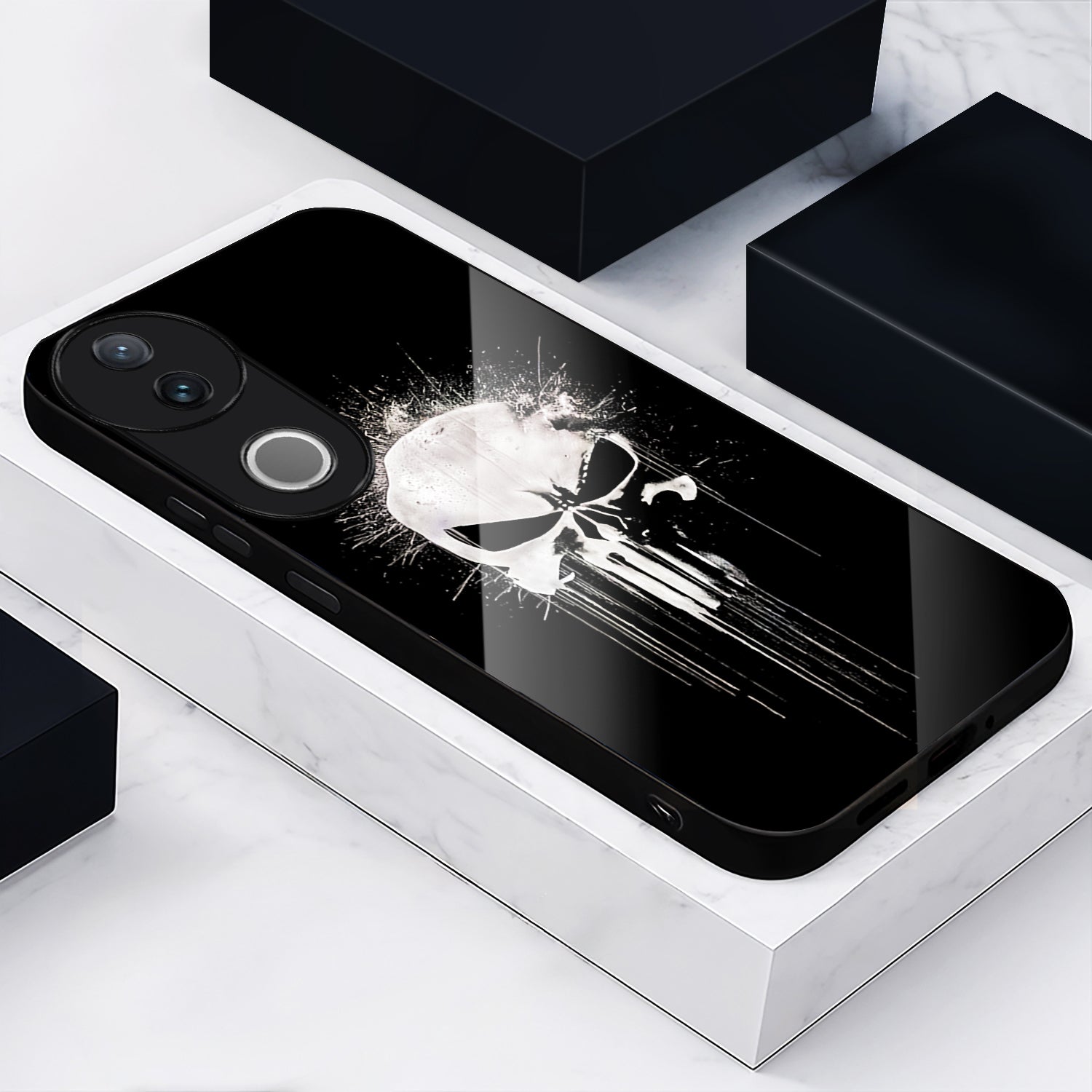 Vivo V50 5G Premium Acrylic Shockproof Glass Back Case (Punisher Skull)