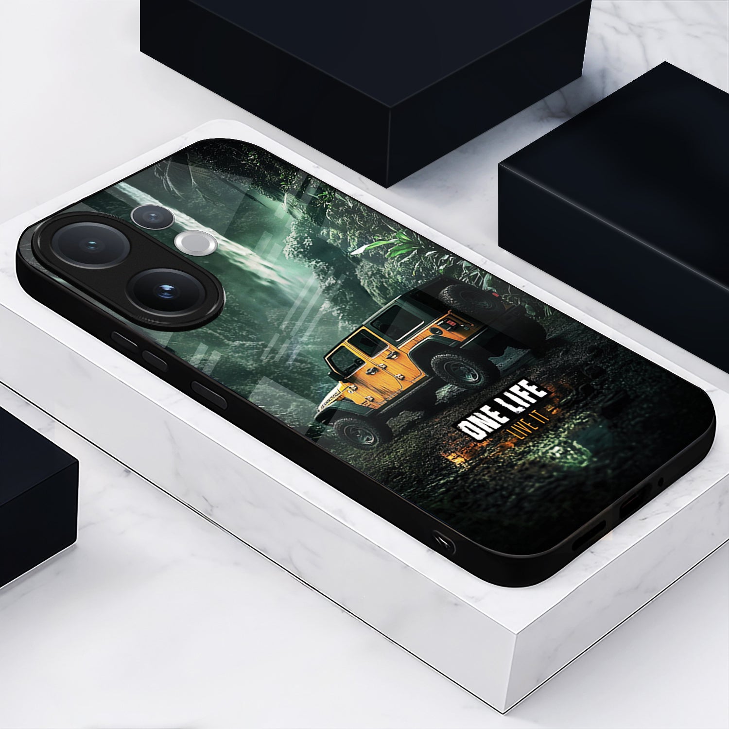 Vivo V60 5G Premium Acrylic Shockproof Glass Back Case (Jeep Case)
